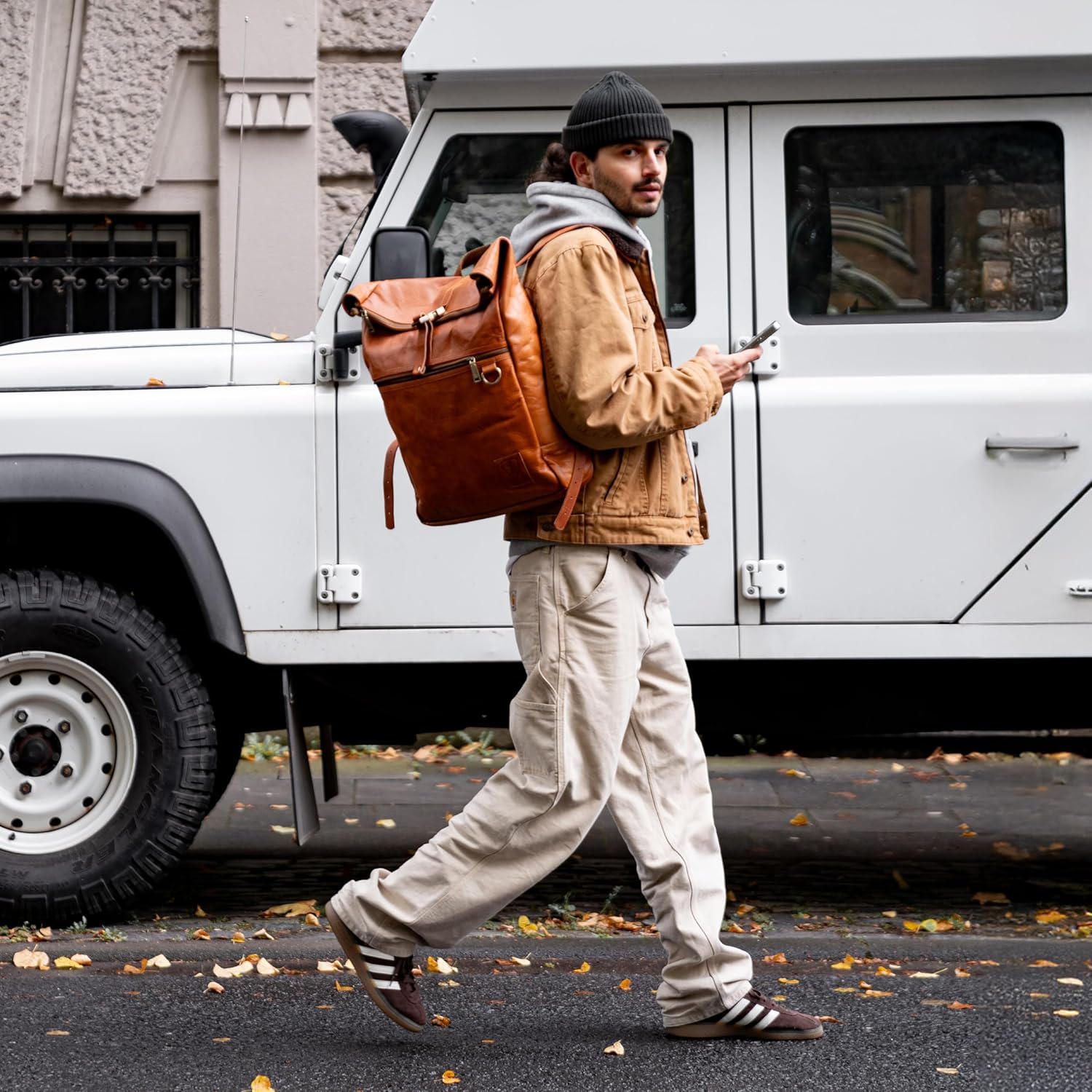 BERLINER BAGS Vintage Genuine Leather Backpack Utrecht, Laptop Backpack, Travel Backpack for Women and Men - Brown