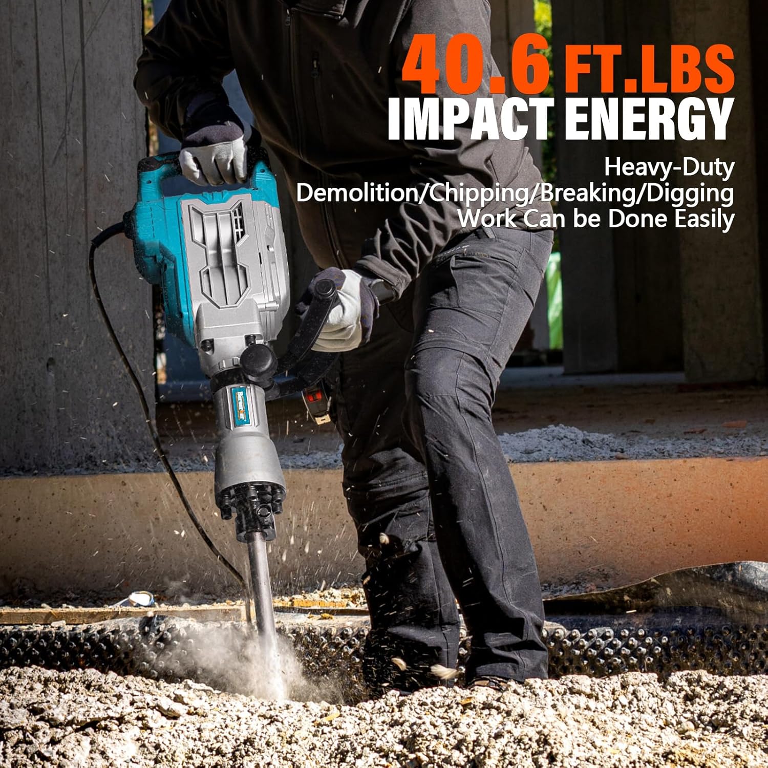 Berserker 1700W 30-Pound Demolition Jack Hammer with 1-3/16" Hex, 14-Amp Corded Electric Heavy Duty Demo Chipping Hammer Concrete/Pavement Breaker with Carrying Case Flat Chisel Bull Point Chisel