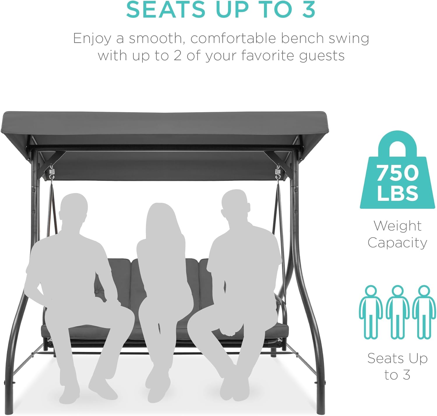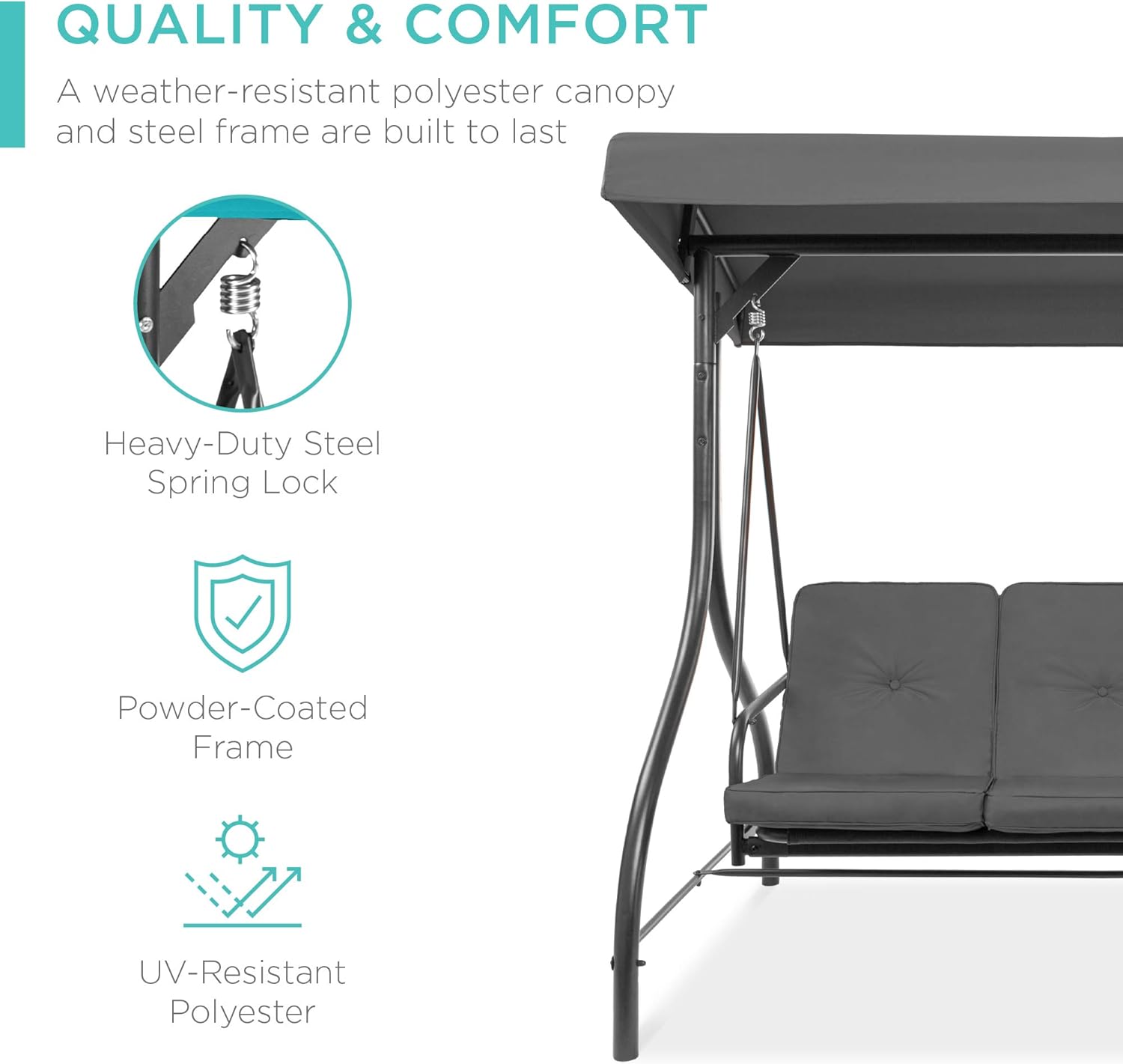 Best Choice Products 3-Seat Outdoor Large Converting Canopy Swing Glider, Patio Hammock Lounge Chair for Porch, Backyard w/Flatbed, Adjustable Shade, Removable Cushions - Gray