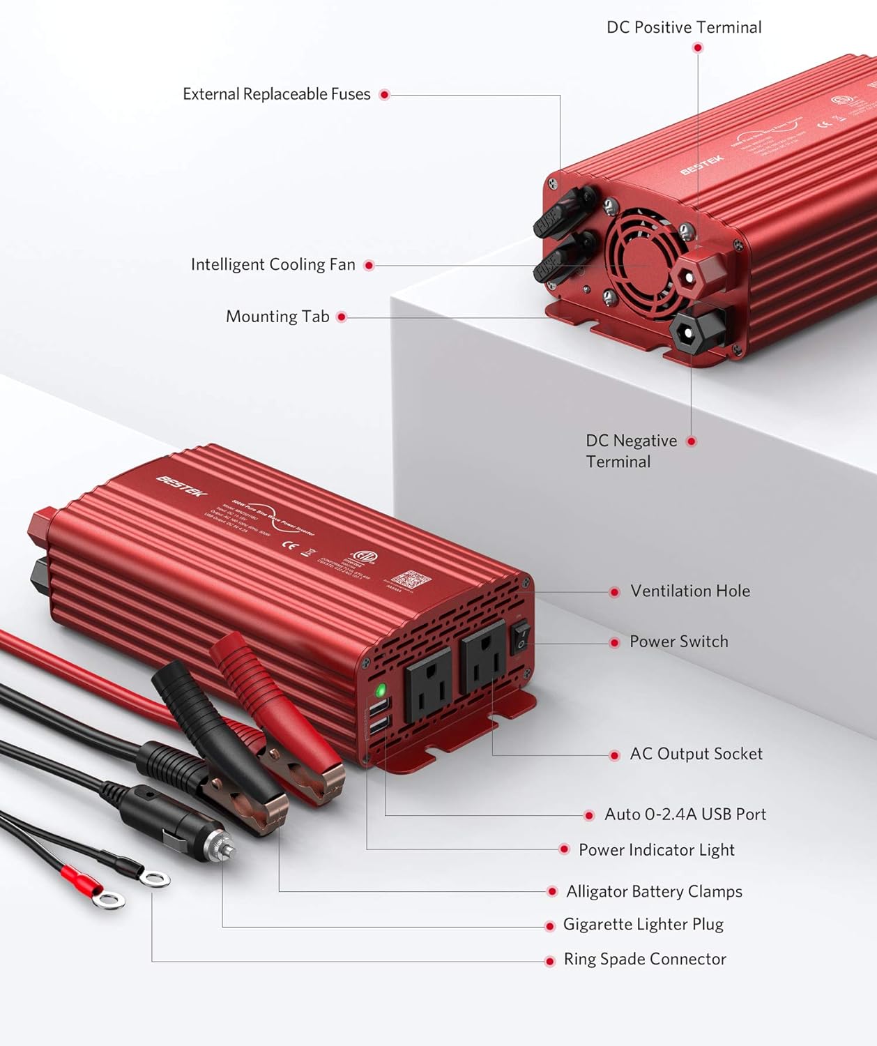 - BESTEK 500W Pure Sine Wave Inverters