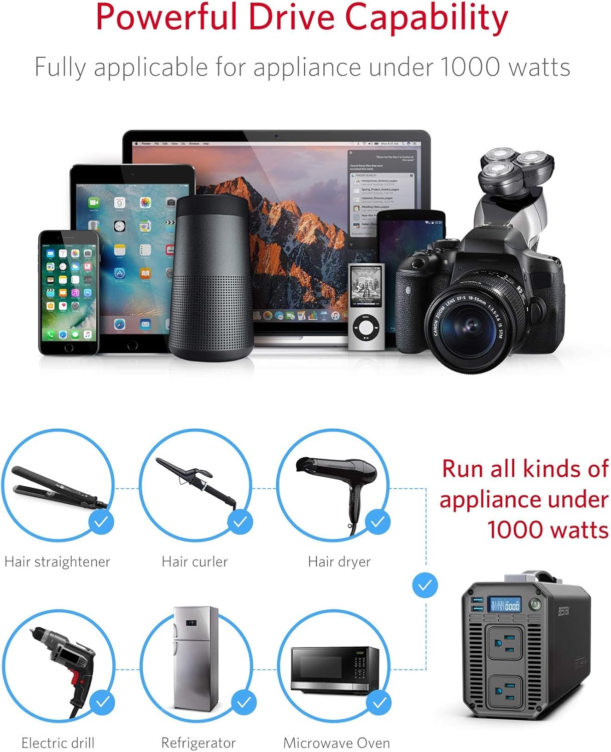 BESTEK Pure Sine Wave Power Inverter - 1000W Car Inverter DC 12V to 110V AC - Car Charger Adapter Outlet with 4.8A Dual USB Charging Ports - Digital LCD Display - Aluminum Housing - Rubber Handle