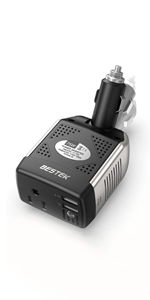 [Pure Sine Wave] BESTEK Power Inverter with 2 USB ports and 2 AC outlet.For charging your iPad, please use the 2.1A USB port and keep the other USB port free. If the rated input of any connected AC devices exceed 150W, please use battery clamps to directly connect to your vehicle's battery as most vehicles' 12V cigarette lighter ports are rated for 150W. Do not use to power high power electric devices such as hair dryers, electric heaters, which might blow a fuse.