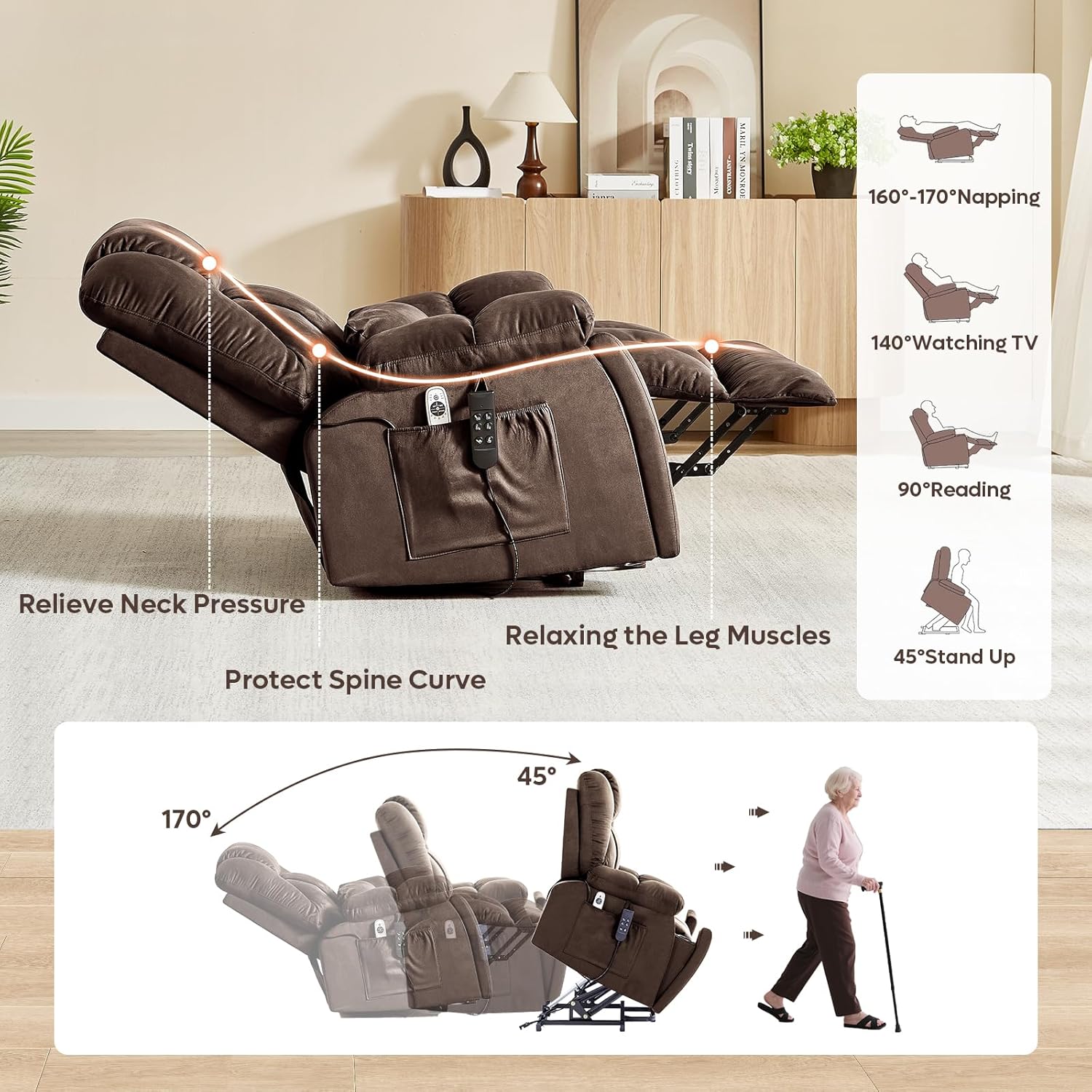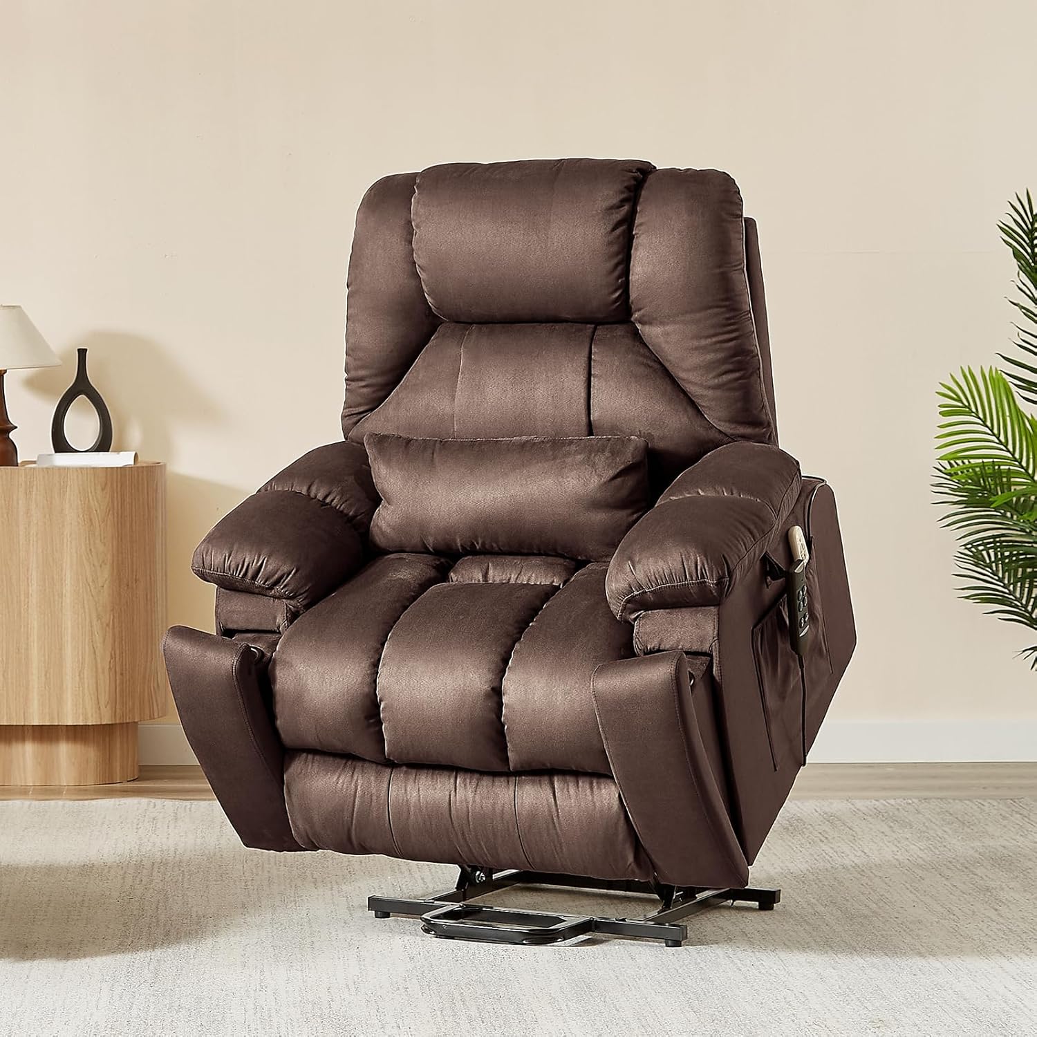 Bestier Dual Motor Power Lift Recliner Chair for Elderly, Oversized Recliner Sofa with Massage and Heat, Extra Wide Lift Chair with Cup Holders & Side Pockets for Living Room Bedroom (Brown)