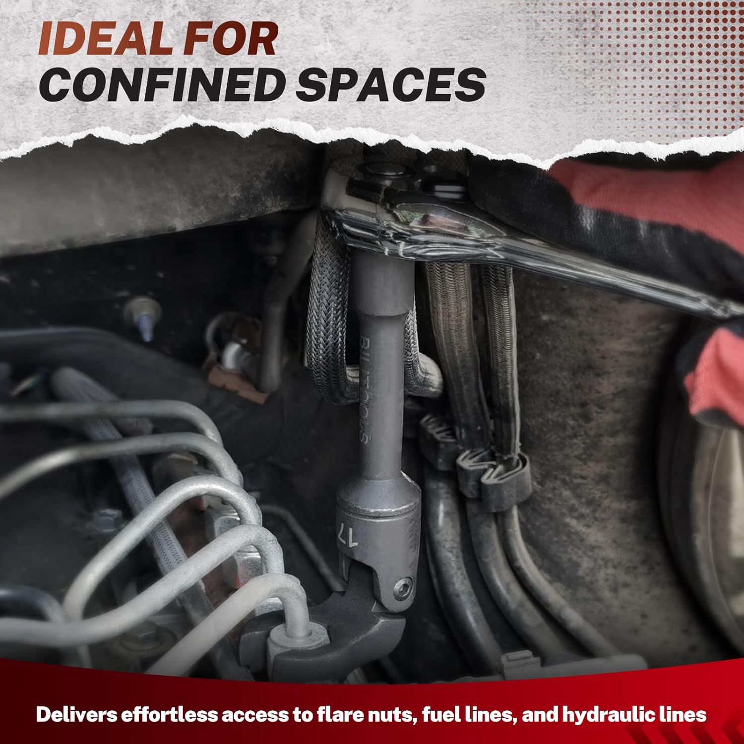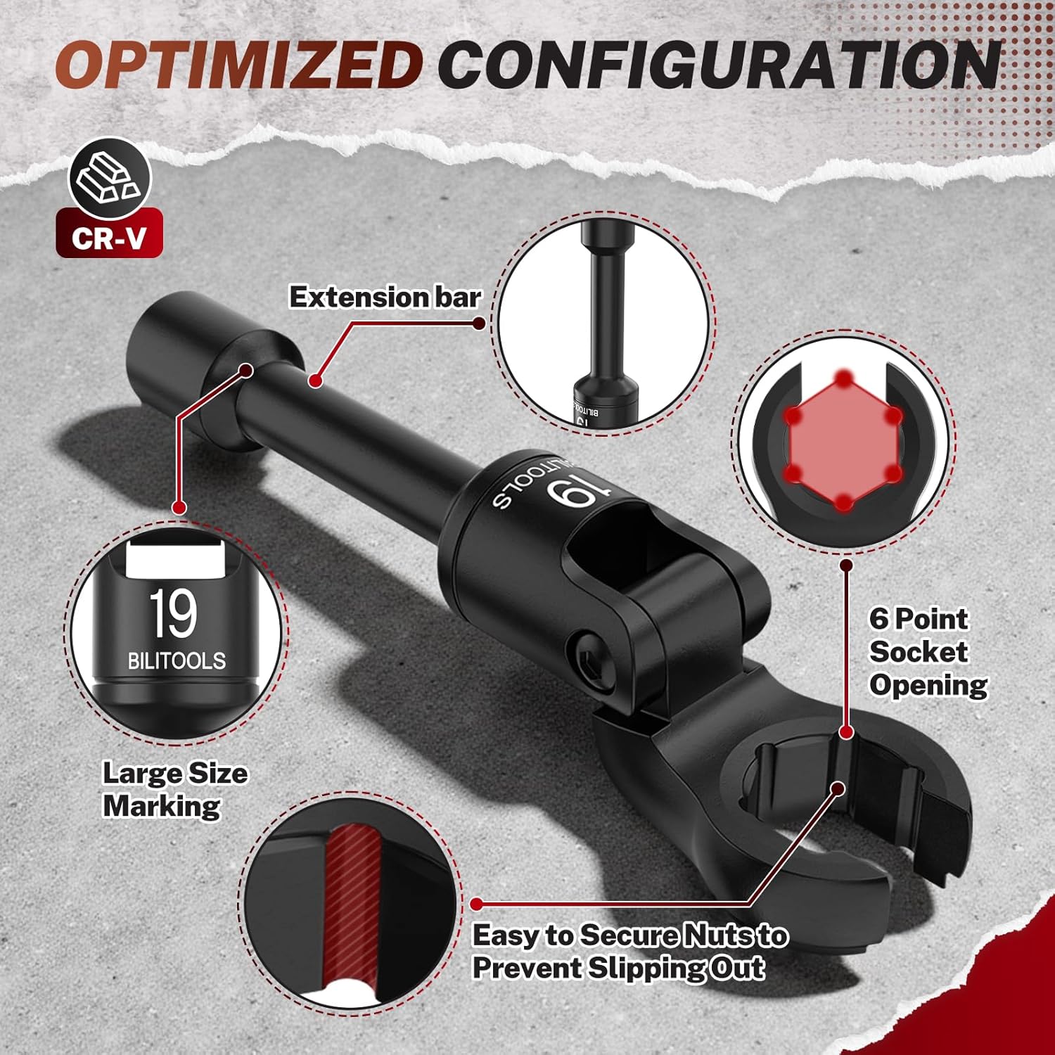 BILITOOLS 6PCS Long Flex Head Crows Foot Line Wrench Set, 3/8" Drive Injector Fuel Line Sockets Wrench Set, Crowfoot Flare Nut Socket Wrench Metric 12 14 16 17 18 19 mm