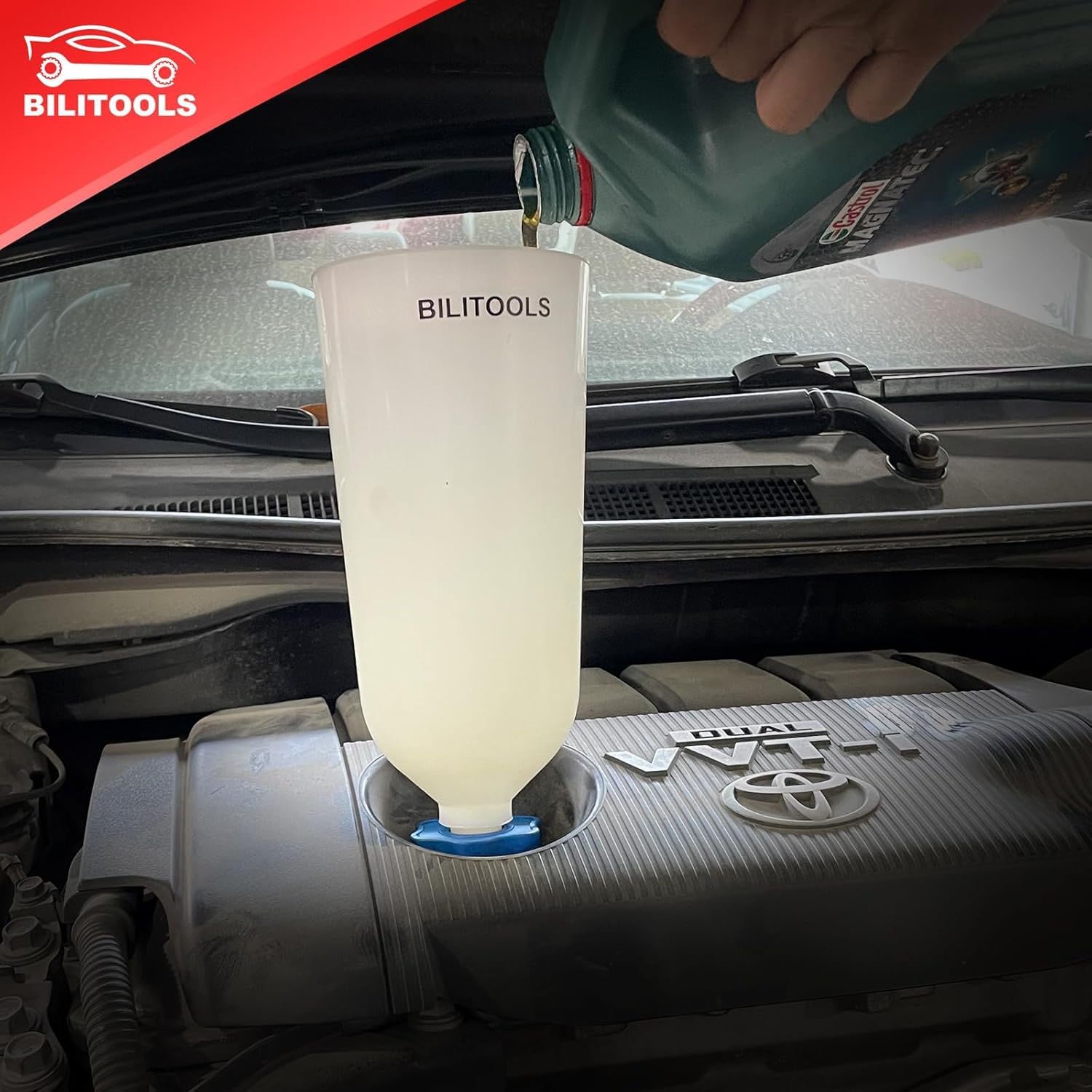 BILITOOLS Oil Funnel Kit for Engine Oil Change, Automotive Funnel Set with 15 Adapters, One-Hand Operation, No-Spill Design for Most Vehicles