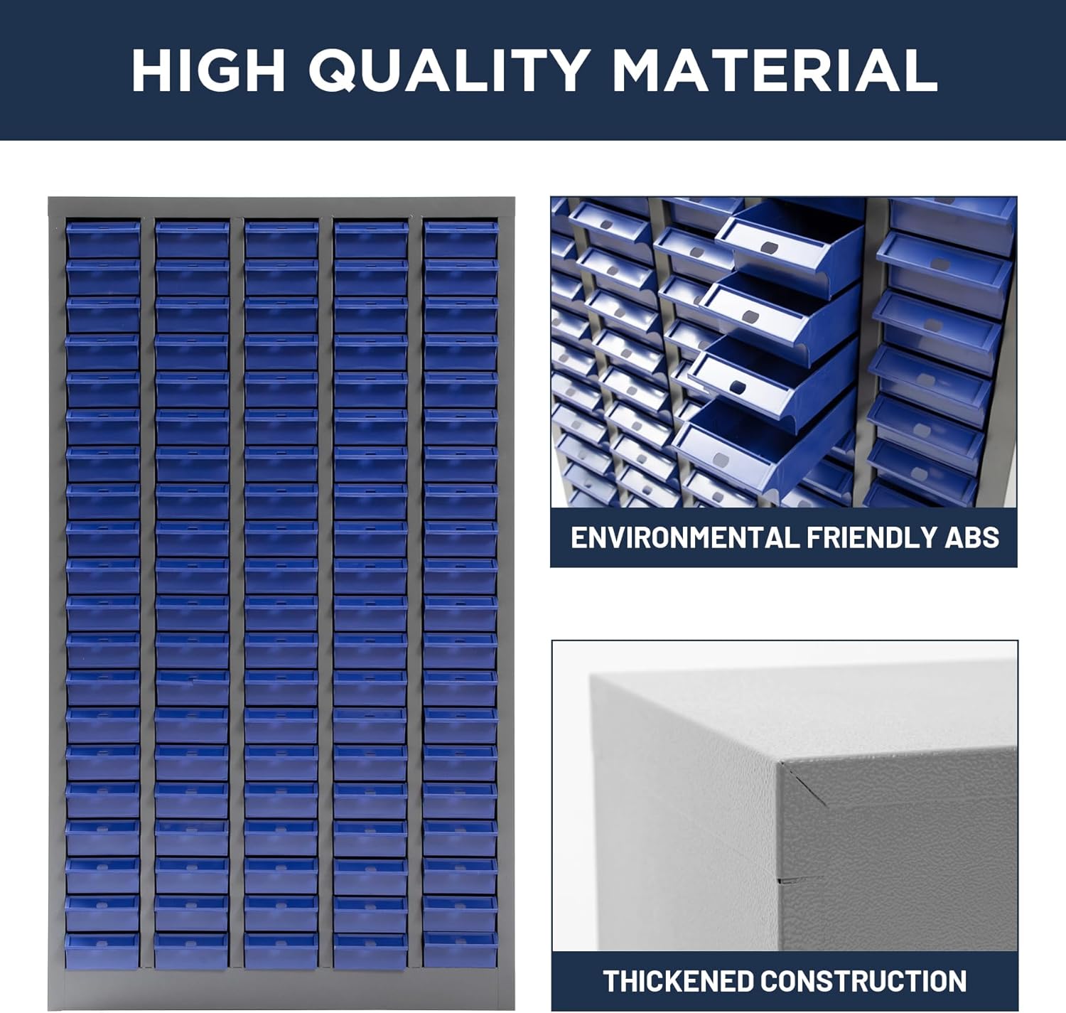 biosp 100 Drawers Bolt and Nut Tool Storage Cabinet Parts Cabinet Hardware Organization Shelves Bolts Bin Tool with ABS Material Drawer Label Stickers for Tool Hardware Storage, Grey