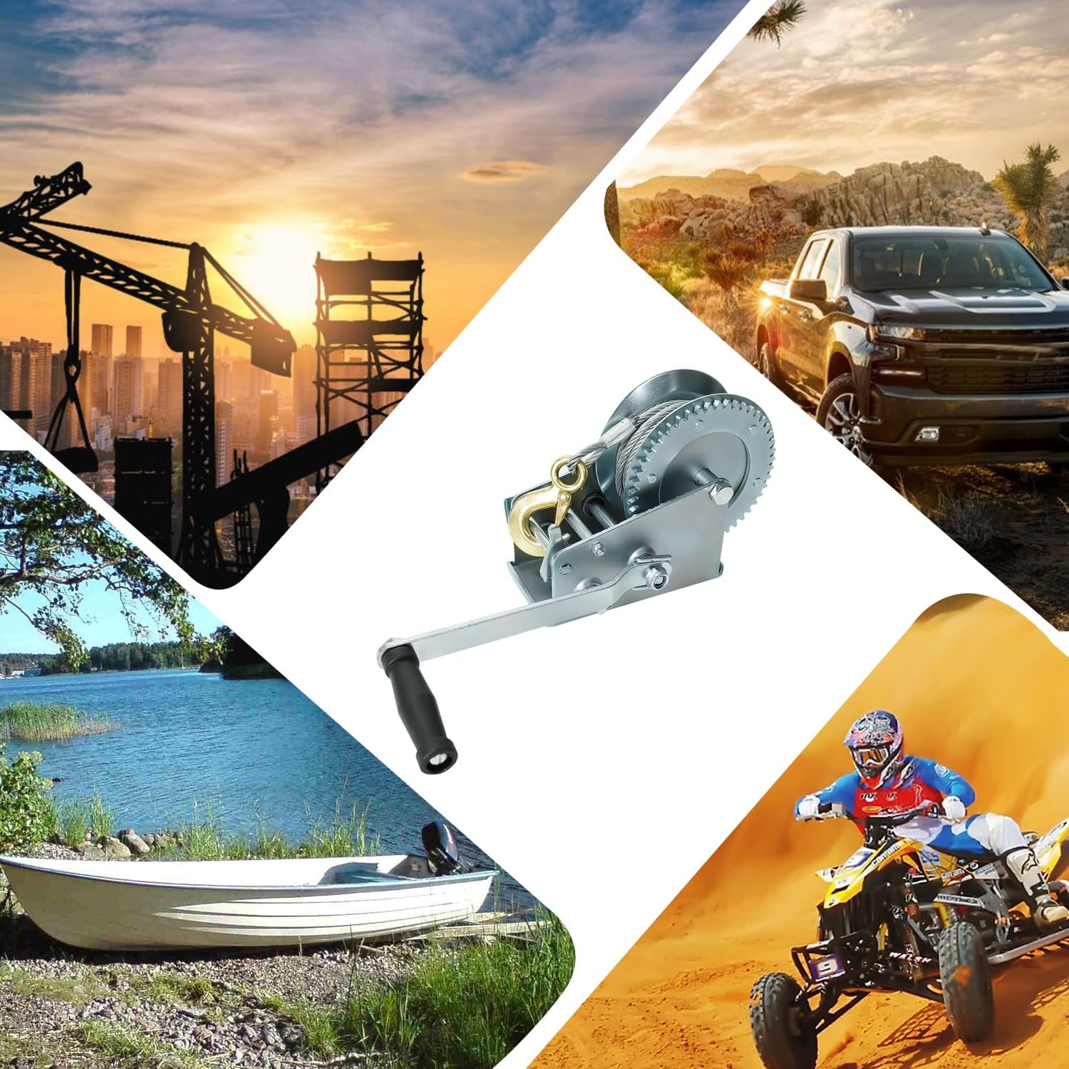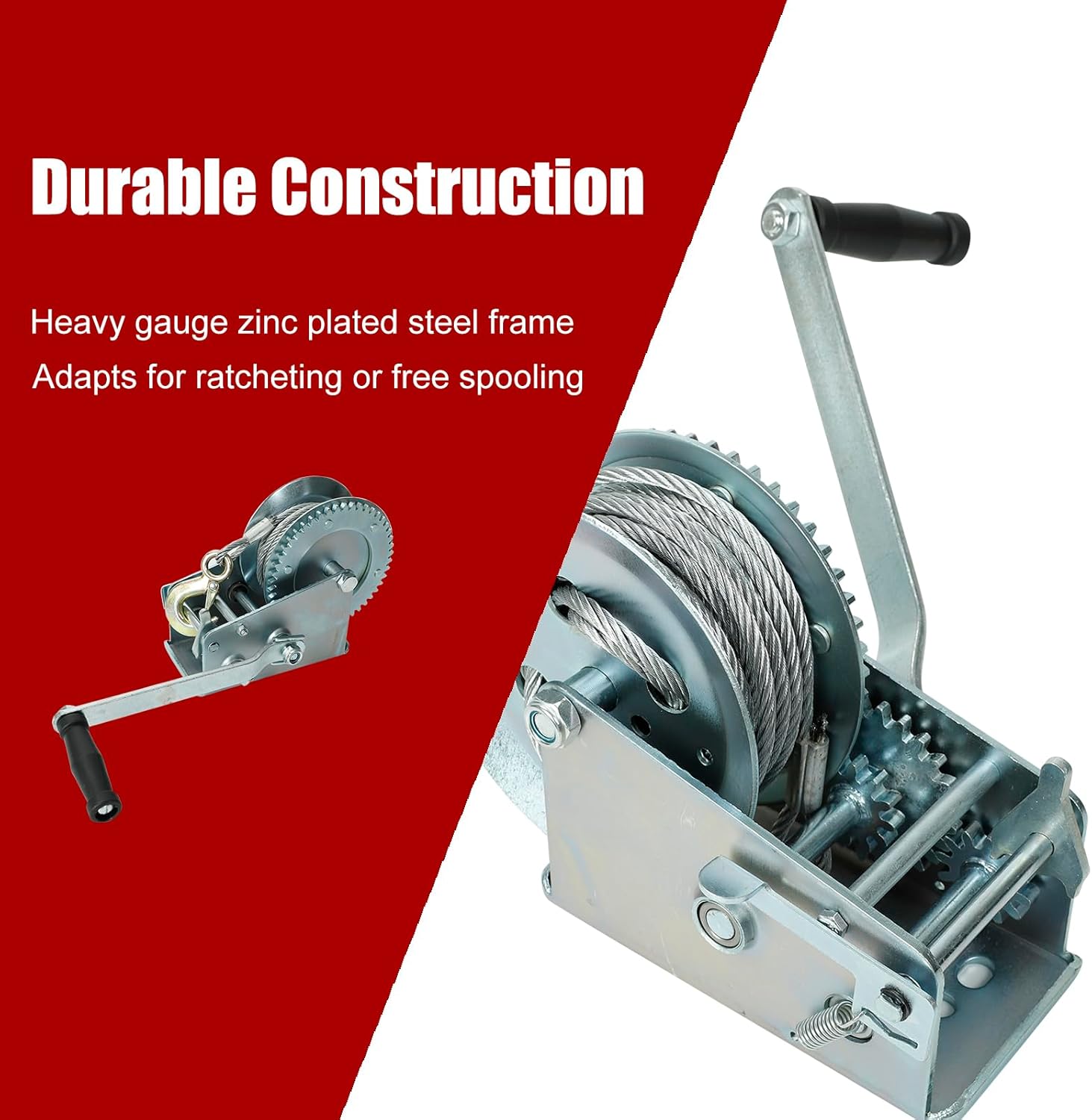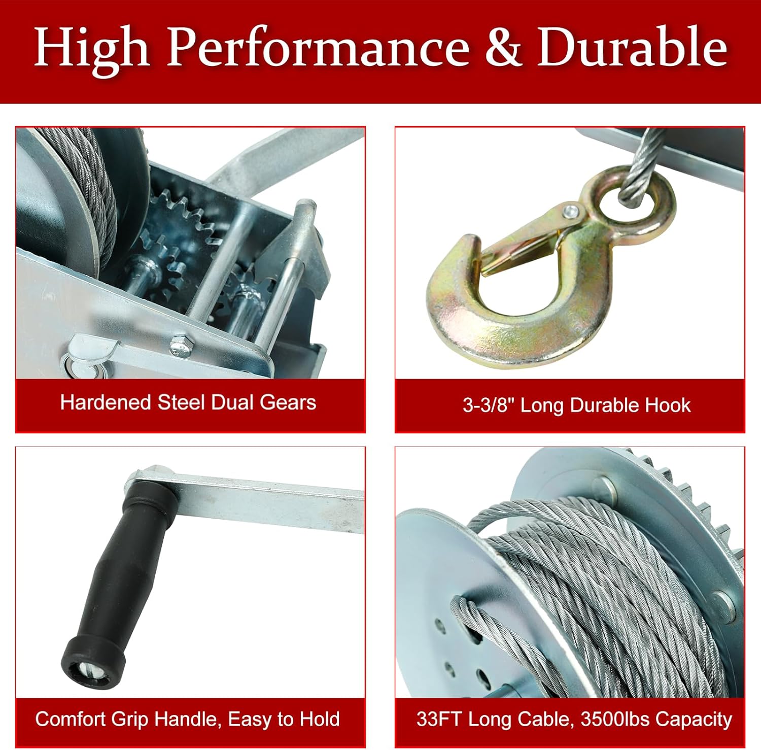 BLACKHORSE-RACING 3500 lbs Hand Winch with 33FT Cable, Hardened Steel 2 Gear Manual Crank Winch for ATV RV Boat Trailer Truck Marine Winch Heavy Duty Hand Crank Winch with Hook