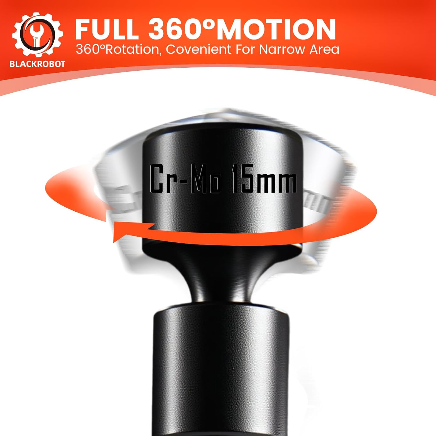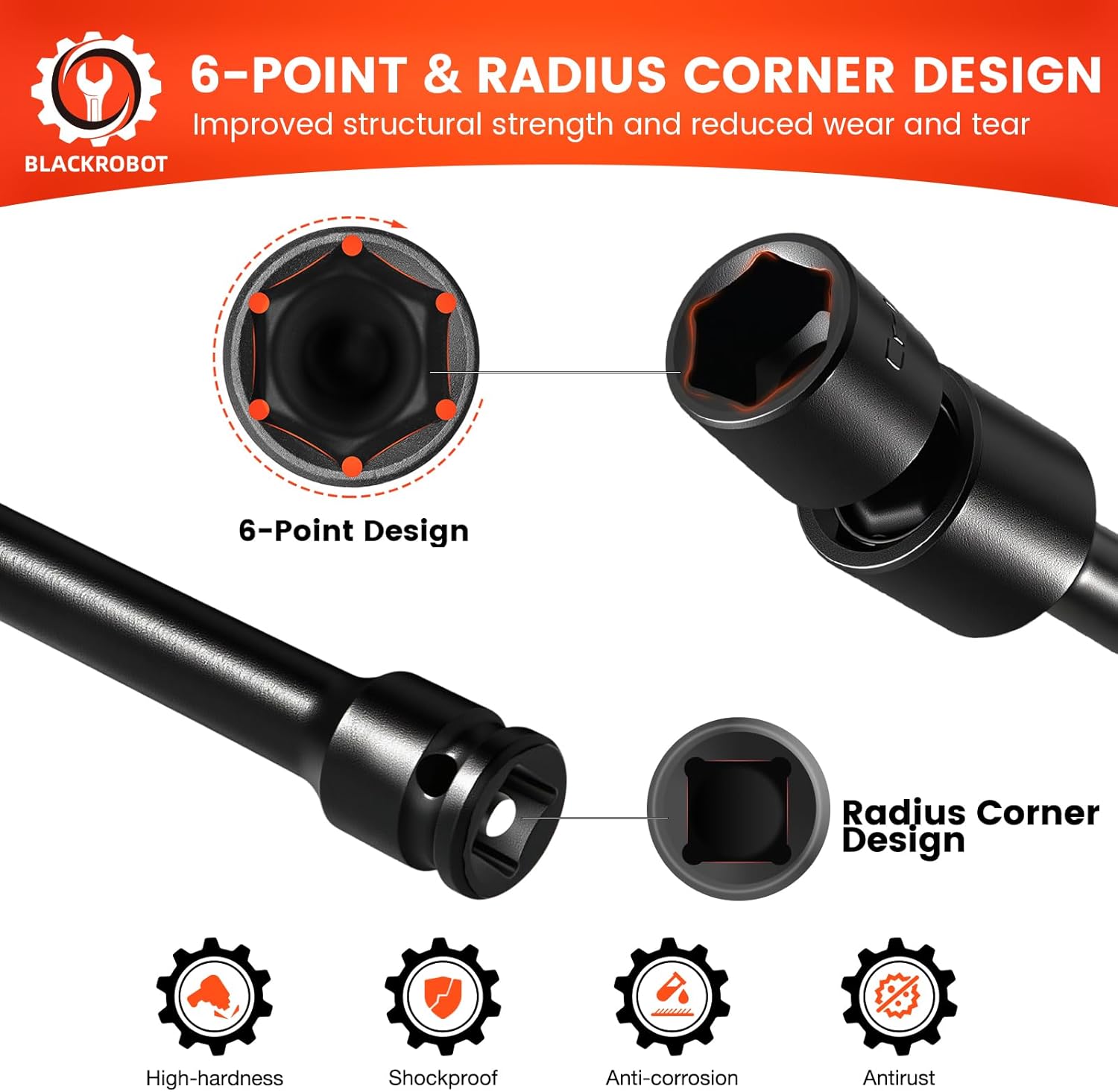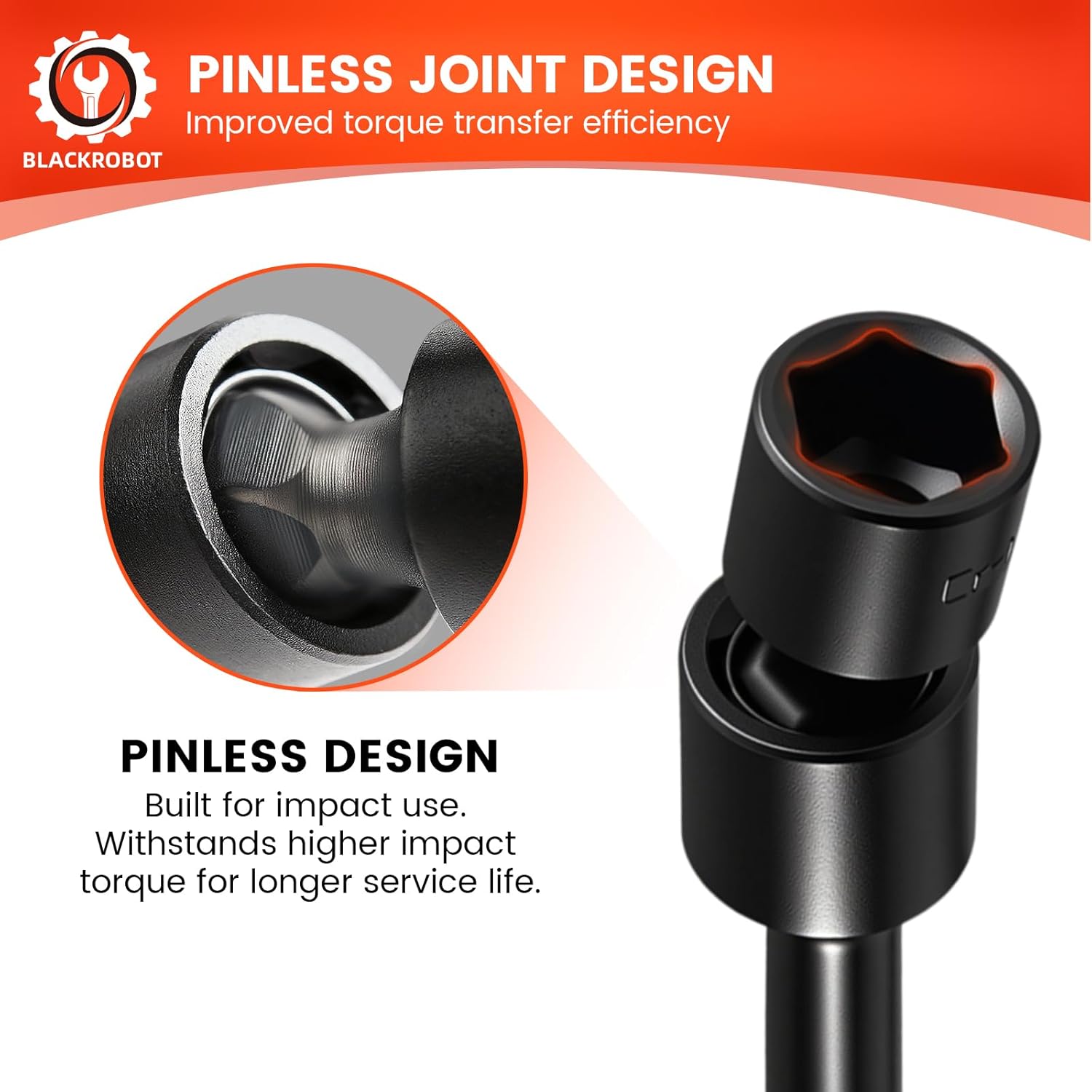 BLACKROBOT 10-Inch 3/8" Drive Impact Swivel Extension Socket Set - Pinless Universal Joint, Metric Size (10-19mm), 6-Point, Cr-Mo Steel
