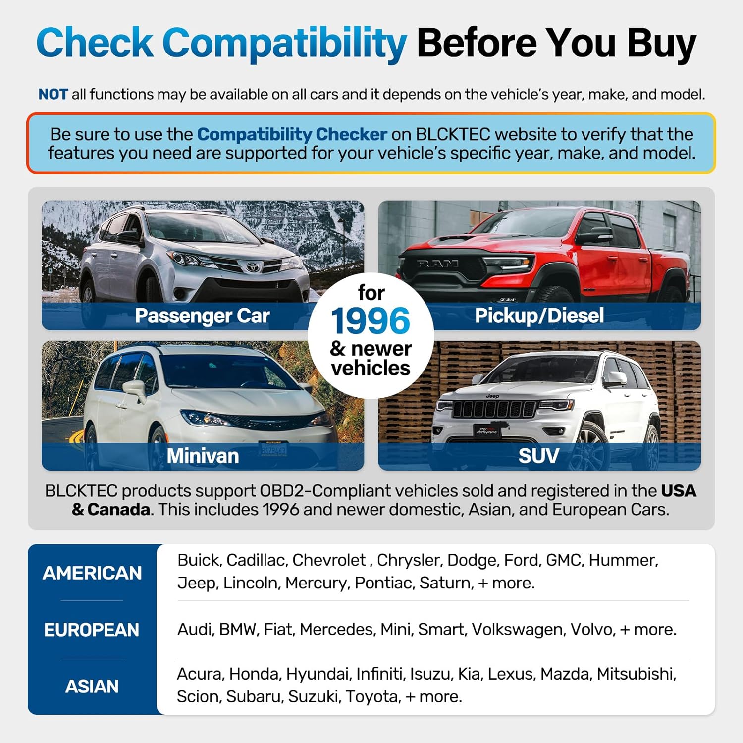 BLCKTEC 440 Bluetooth OBD2 Scanner Diagnostic Tool - Car Code Reader and Scanner for Car - Comes with Live Data - Battery/Charging System Test - Works for All OBD Compliant Cars 1996 & Newer
