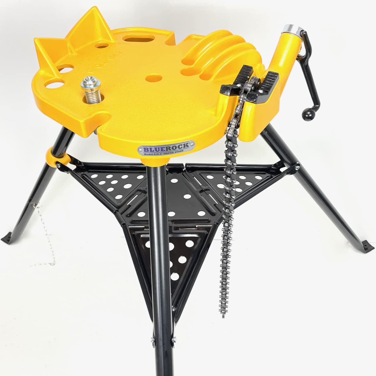 BLUEROCK Portable Pipe Chain Vise 1/8" - 6" Capacity on Tripod Pipe Vice Stand Model H401 618 460-6 40-A