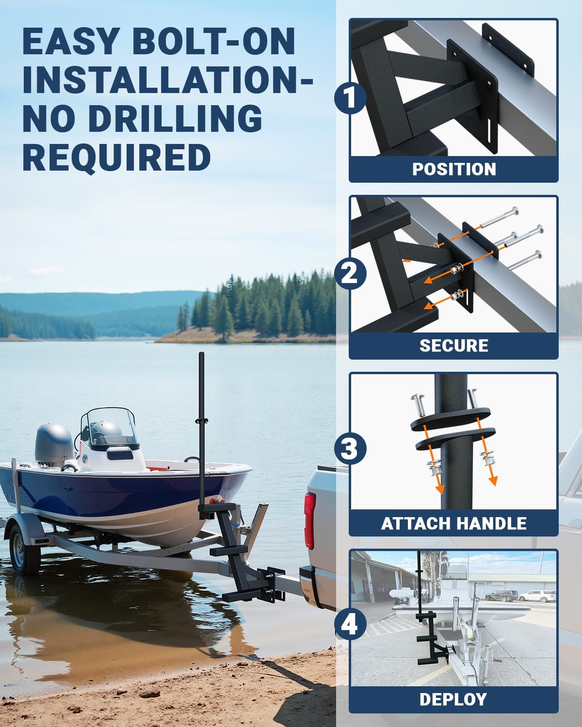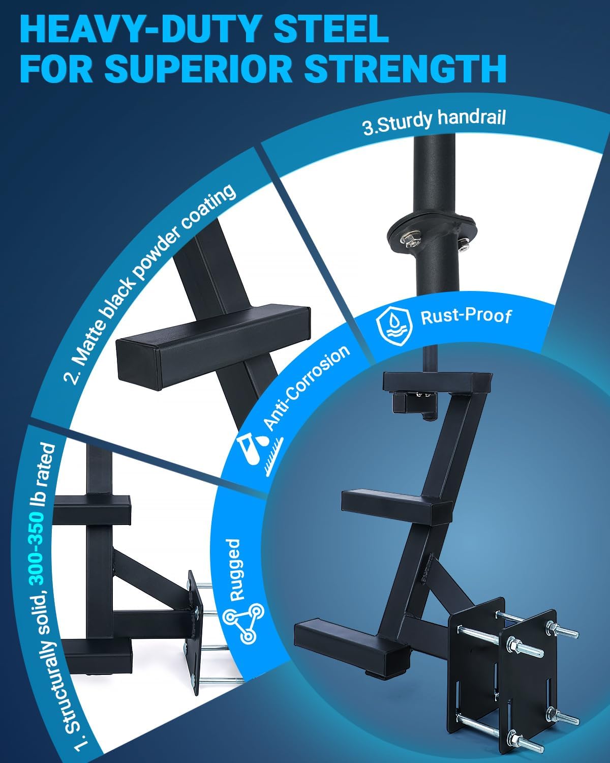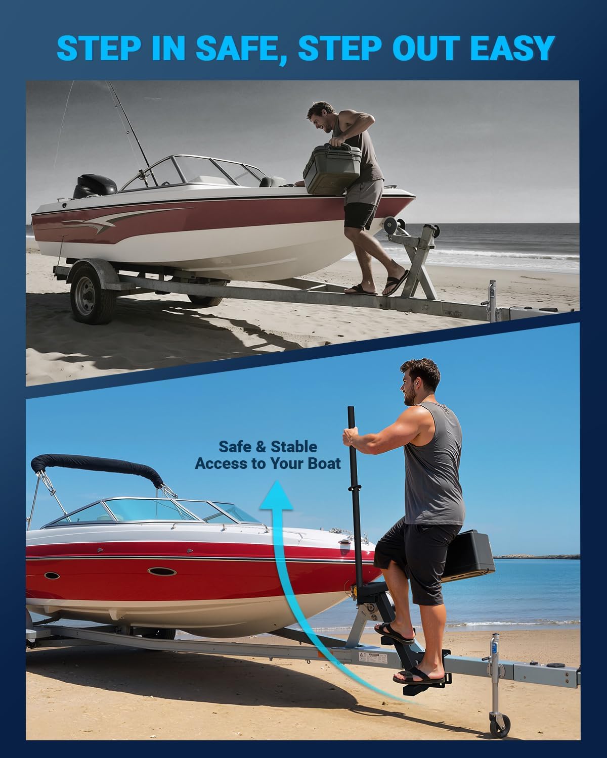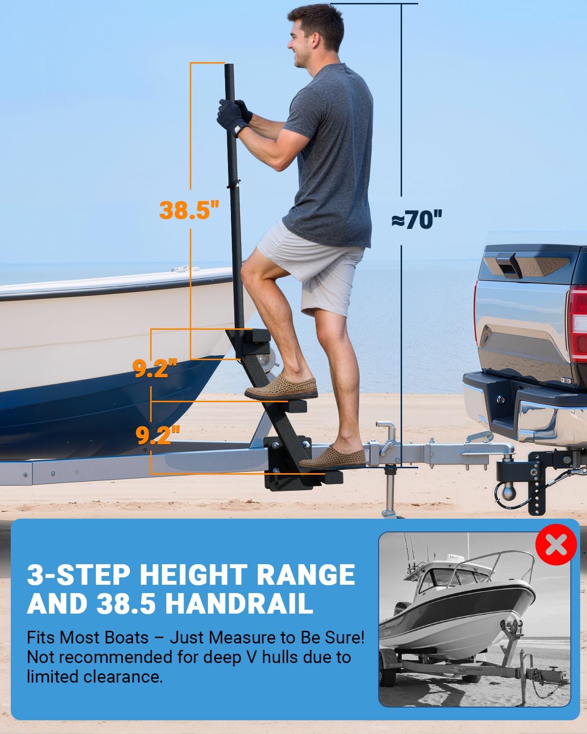 Boat Trailer Steps with Handrail Heavy-Duty Boat Boarding Step Ladder for The Tongue, Side Mount Non Slip 3 Steps
