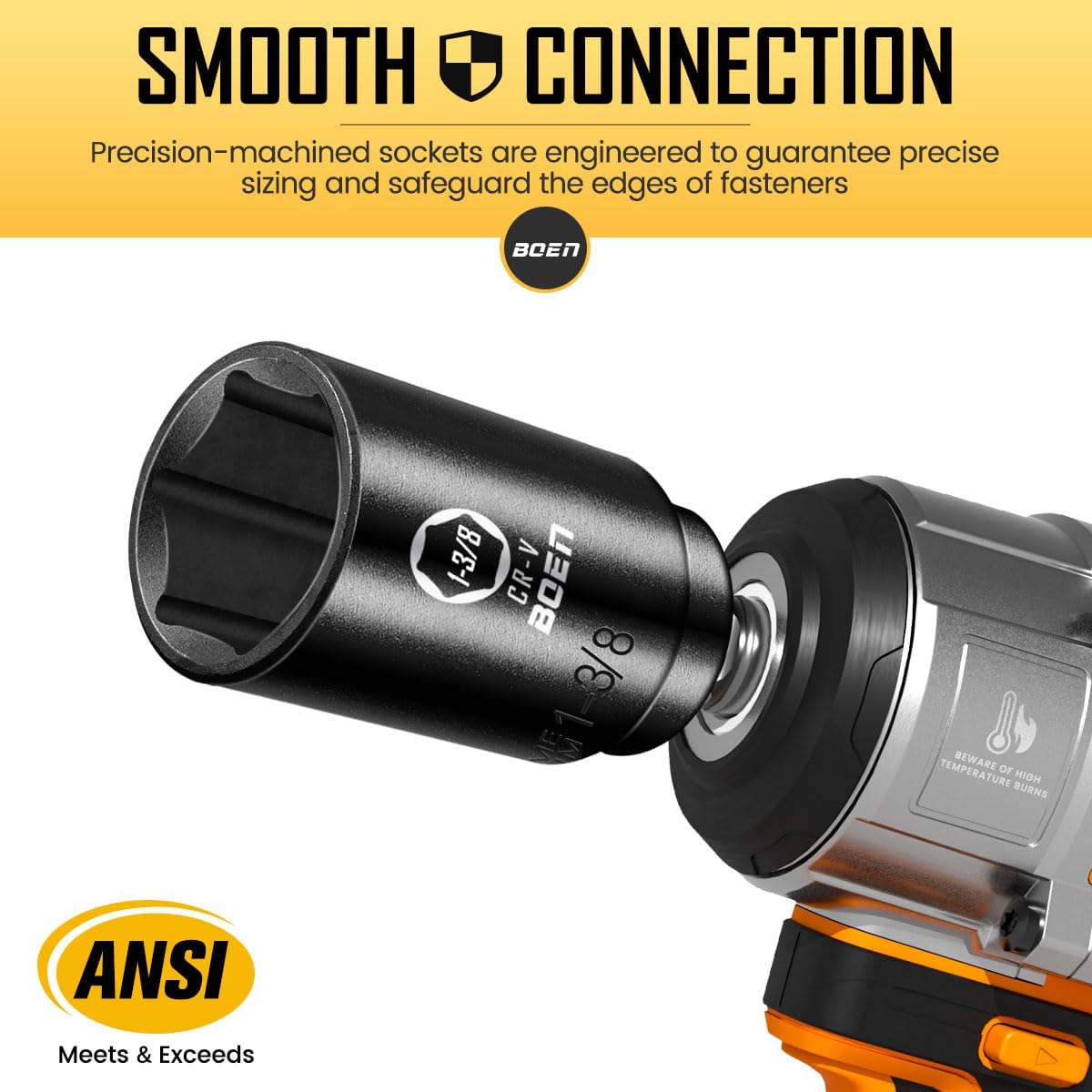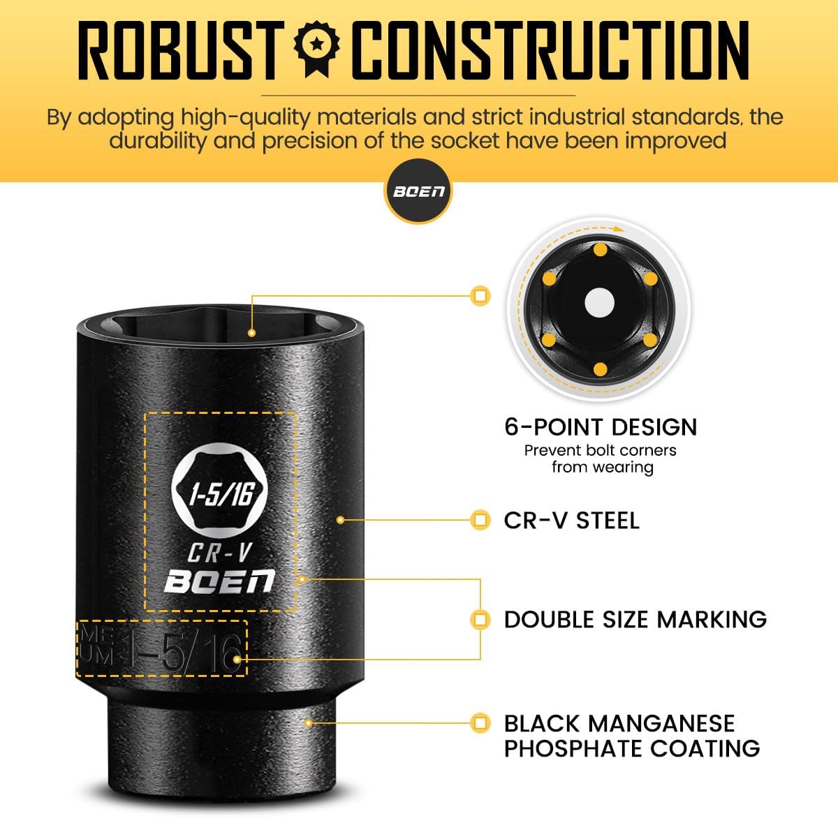 boen 1/2” Drive SAE Impact Socket Set, 3/8" to 1-1/2" Deep Socket, 6-Point Hex Socket with Portable Case, Rugged Construction, CR-V Steel, 24PCS