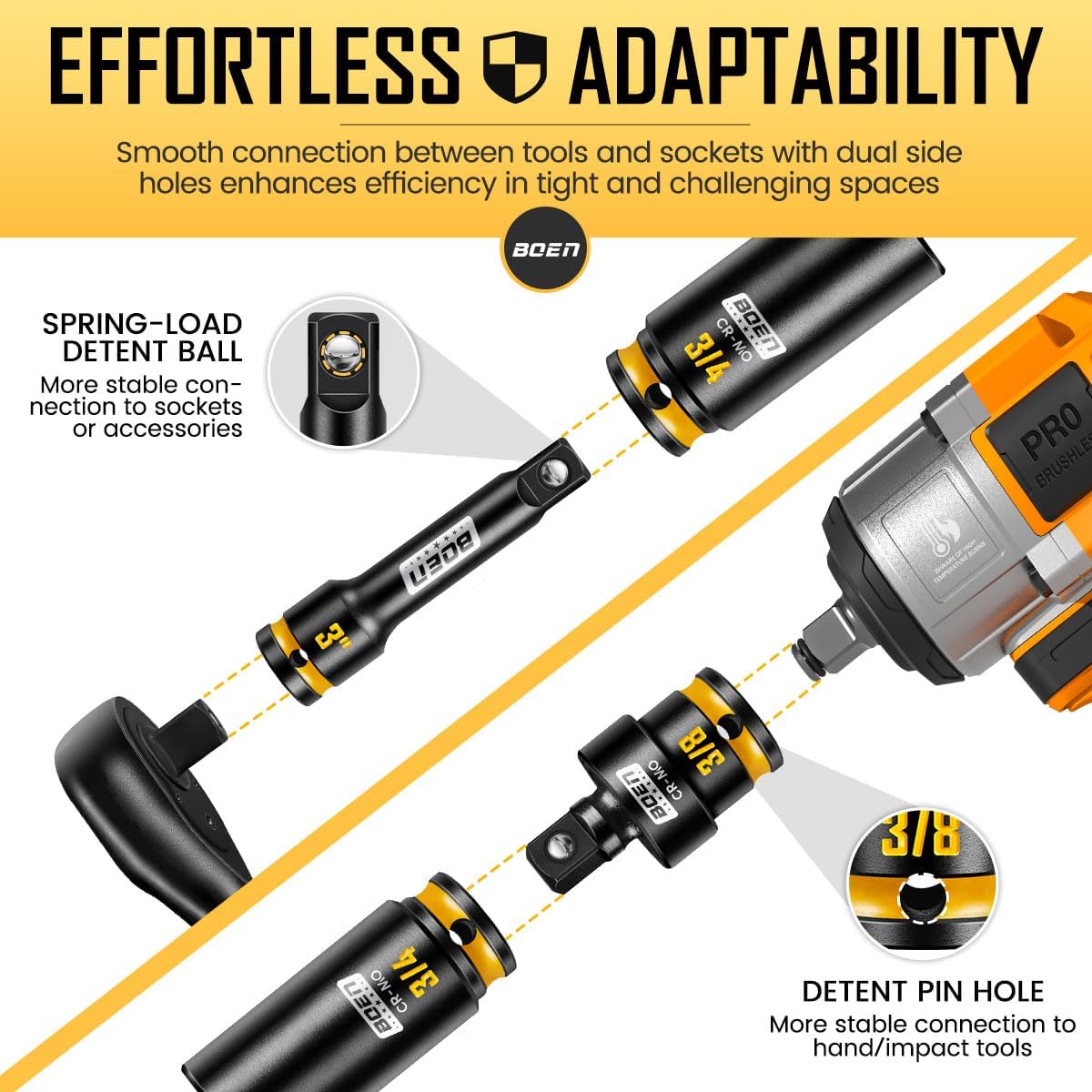 boen 3/8" Drive Impact Socket Set, 48-Piece Metric & SAE Size (8-22mm & 5/16"-3/4"), 6-Point Deep & Shallow Socket Set with Extension Bars, Adapter and Universal Joint, CR-MO Steel
