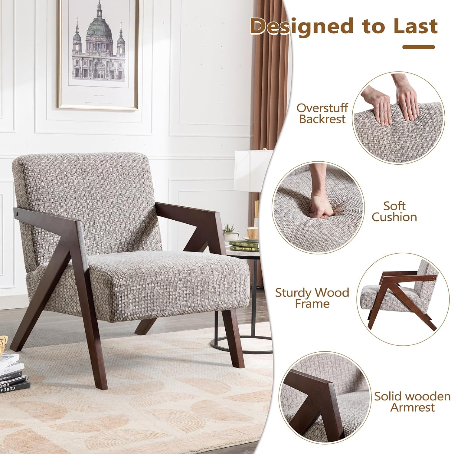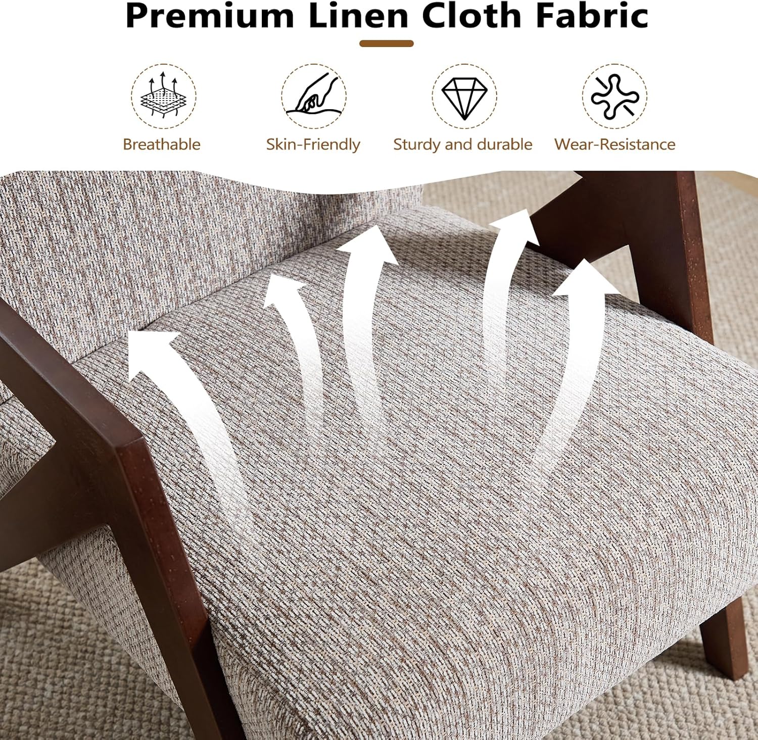 Bonzy Home Mid-Century Modern Accent Chair Set of 2 with Solid Wood Frame, Upholstered Armchair for Bedroom & Living Room,Reading Side Chair with Soft Lien Fabric Cushion,Easy Assembly,Beige