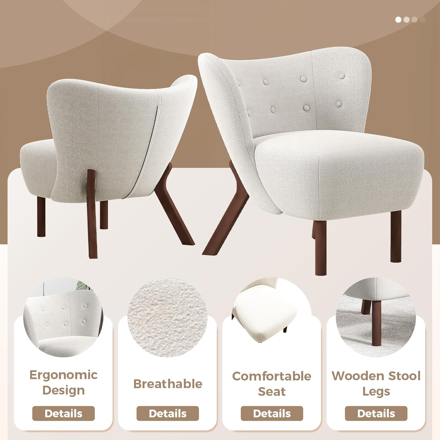 Bonzy Home Modern Accent Chair, Fabric Upholstered Wingback Side Chair with Wooden Legs, Slipper Chair for Living Room, Bedroom, Entryway, White