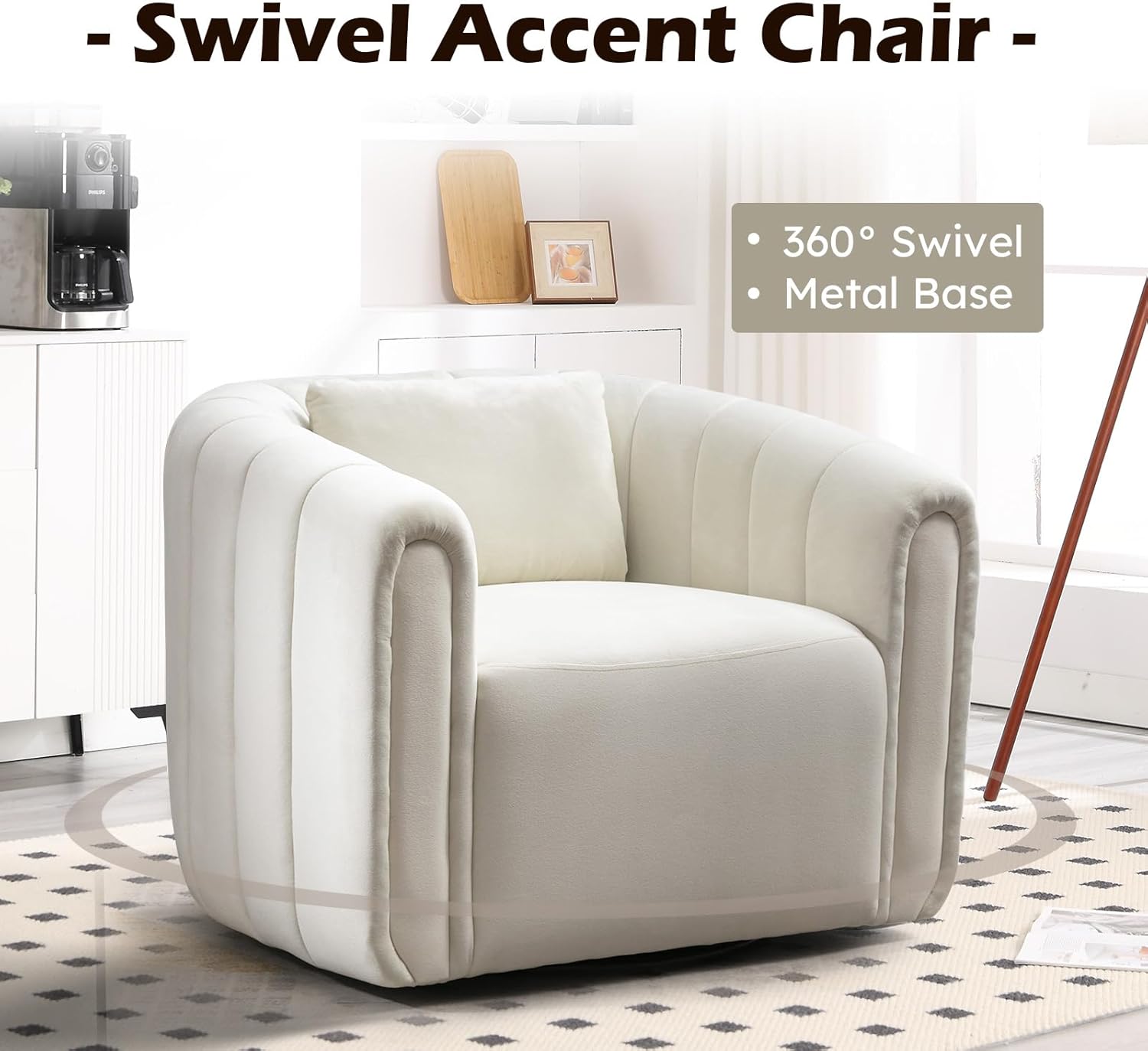 Bonzy Home Swivel Barrel Chair, Modern Velvet Swivel Accent Chair with Channel Tufting, Soft Upholstered Armchair for Living Room Bedroom Office (White, 2 Pack)