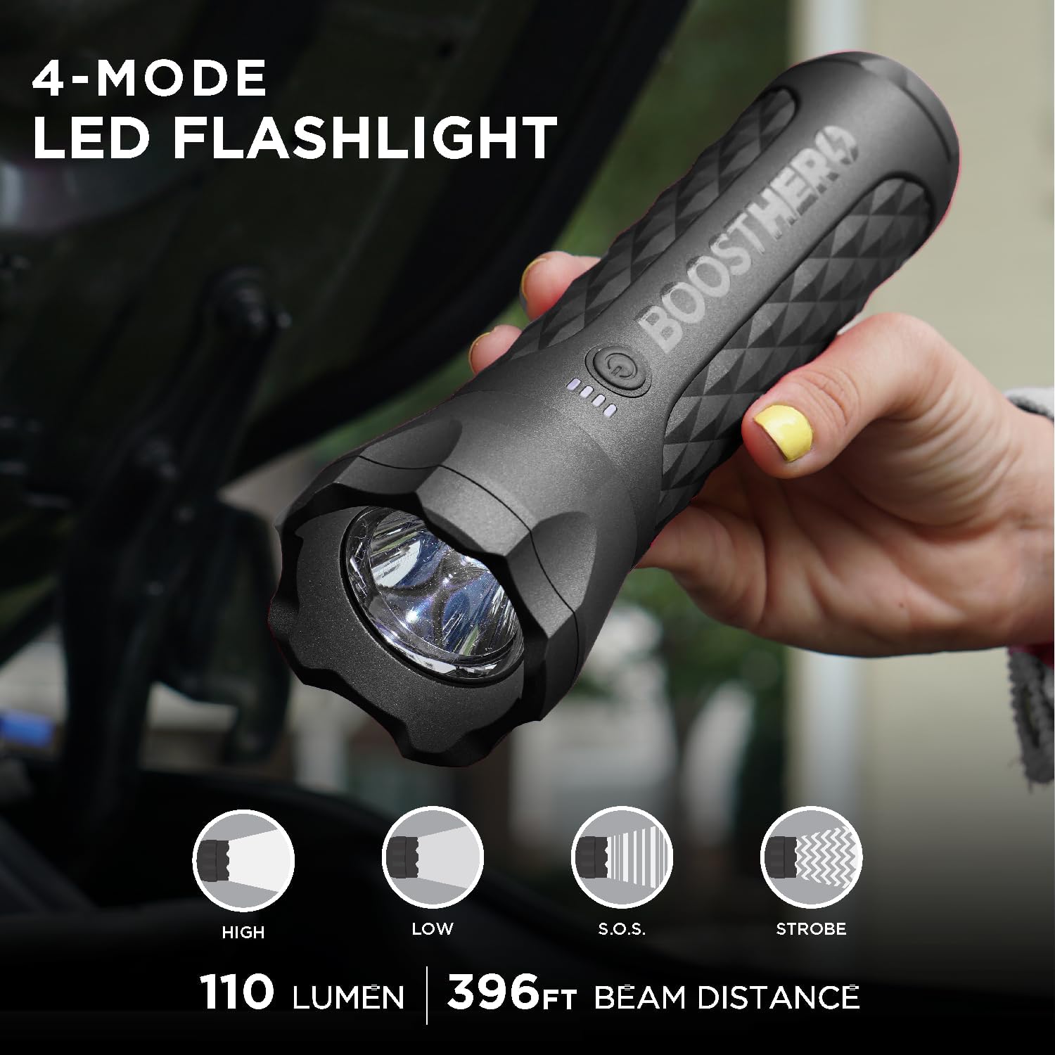 BoostHero Portable Car Battery Jump Starter, 6,000mAh Power Bank, LED Flashlight, with Smart Jumper Cables for up to 6.0L Gas/4.0L Diesel Engines (Black)