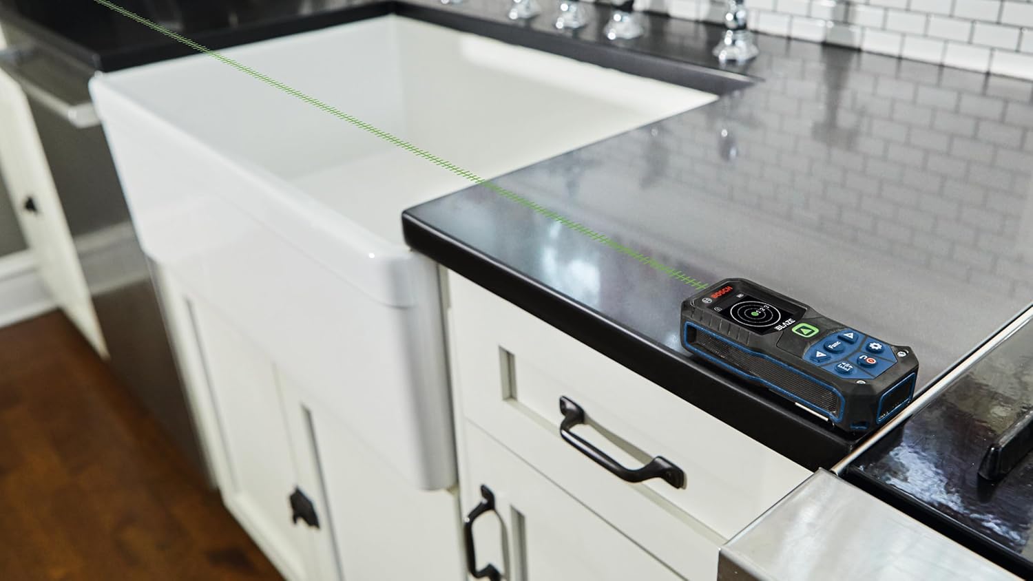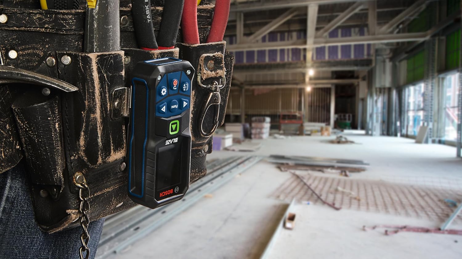 The Bosch BLAZE™ GLM165-27CGL uses green-beam technology, which generates a point/dot up to 4X brighter than standard red beams. The inclinometer shows the tilt angle up to 360 degree for easy angle and indirect measurements. The laser has accuracy up to +/-1/16 inch, plus it includes a rounding button that rounds the measurement to the fraction that best suits the application and haptic feedback for loud jobsites. The digital laser measure also offers Bluetooth® functionality, so users can digitally transfer measurements to a smartphone or tablet through the free MeasureOn app. It also has full rubber overmold housing, designed to be similar to a roll cage. It has a rechargeable Li-ion battery for extended runtime. It is IP65 rated and has an ergonomic design for better grip. It includes 11 different measuring functions, including real-time length, length, area, volume and indirect functions, and addition/subtraction capability.