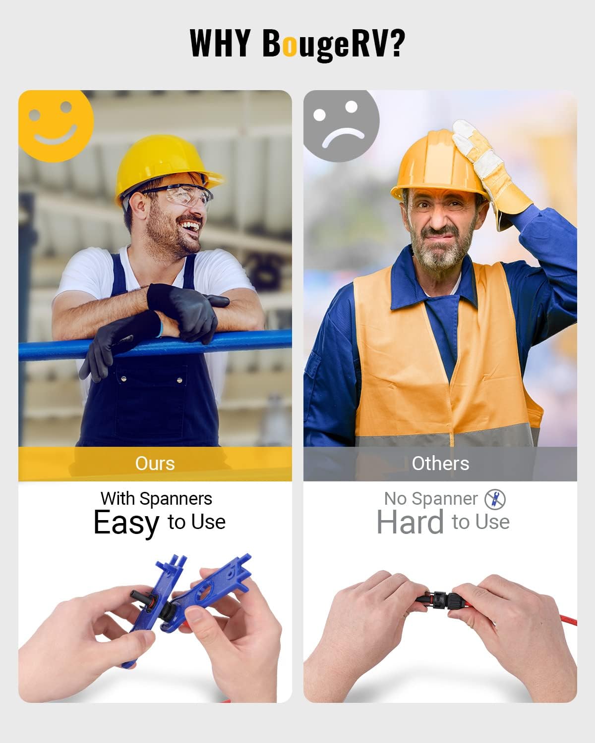 - BougeRV solar panel connectors are made of the highest quality materials to ensure long-term durability, heavier and sturdier than other similar products in the market