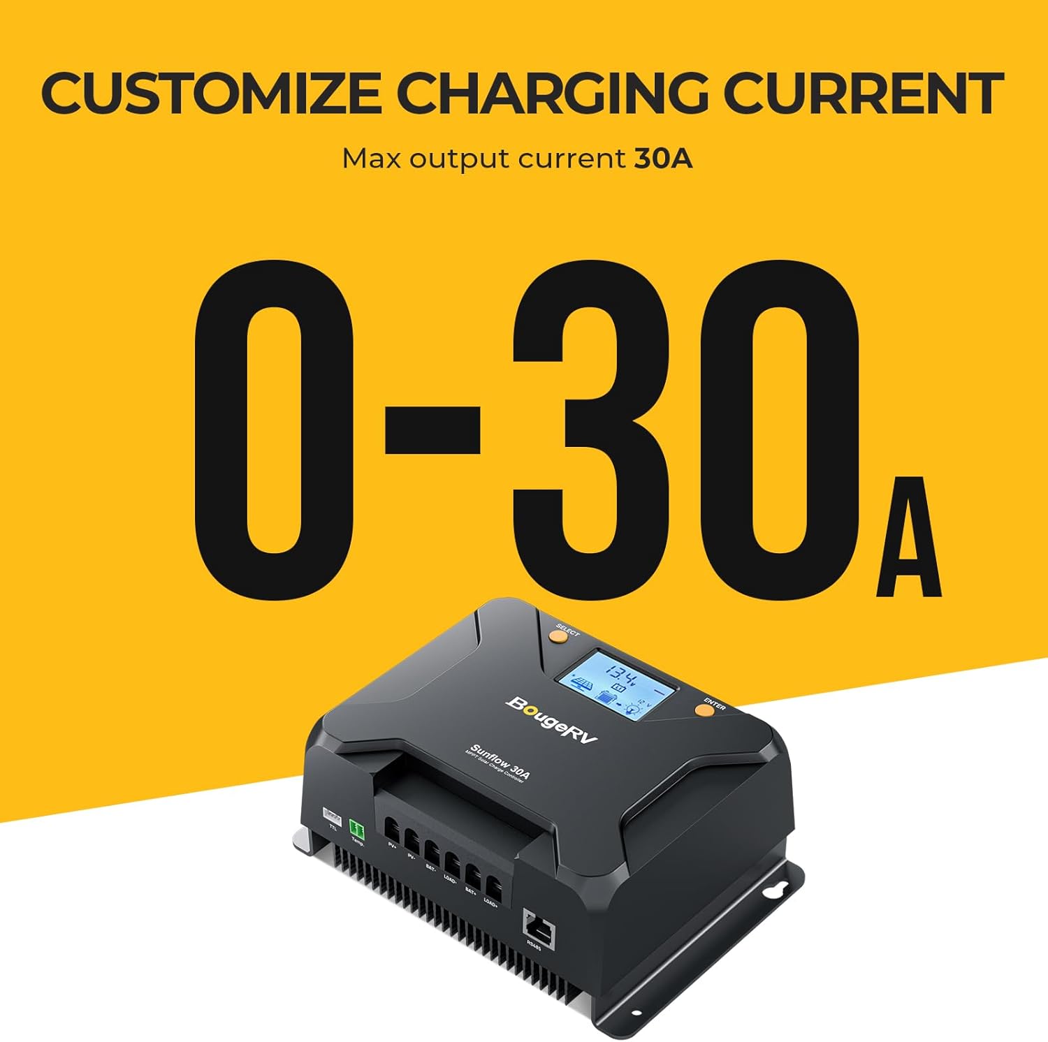 BougeRV MPPT Solar Charge Controller 30A, w/ Low-Temp Cut-Off, APP Control, Backlit LCD, 30 Amp Solar Panel Regulator 12V/24V for LiFePO4, SLD, Gel, FLD, AGM Battery, RV, Marine, Upgraded