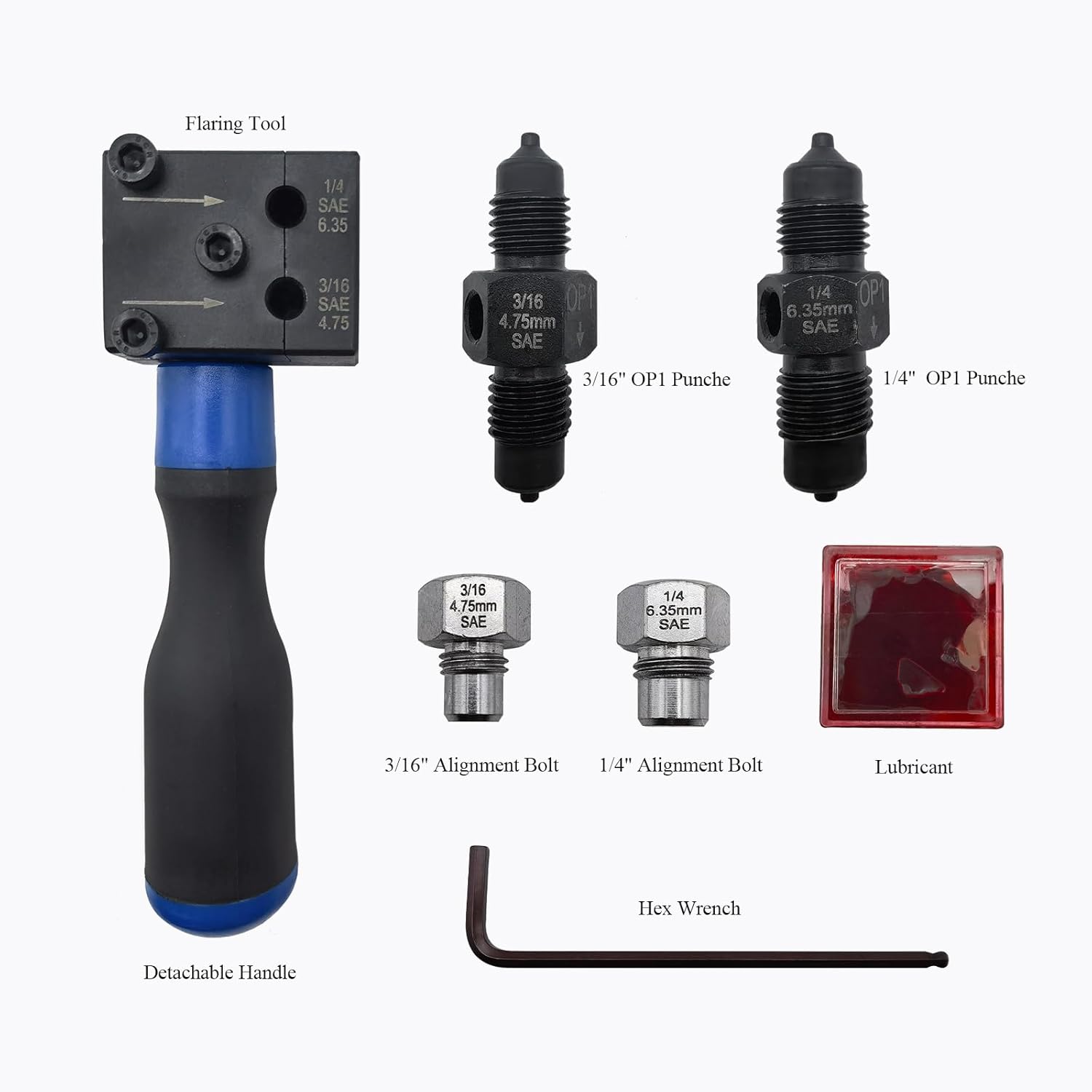 Brake Line Flaring Tool Kit, 3/16 in and 1/4 in Double Flaring Tool, Flare Tool for Vehicle Brake & Hydraulic Lines