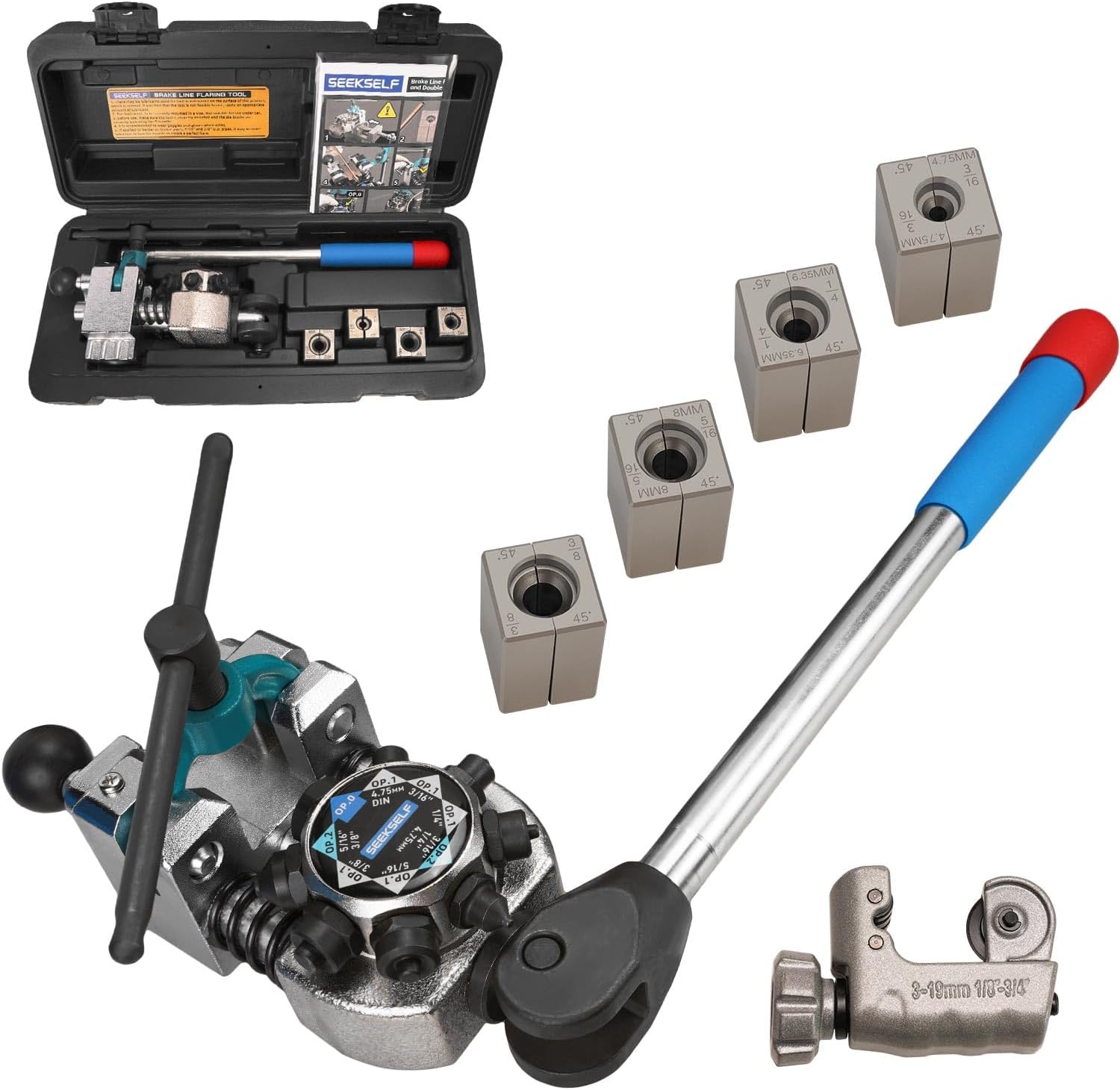 SEEKSELF 45 Degree Brake Line Flaring Tool Kit for Single, Double and Bubble Flares, with Pipe Cutter