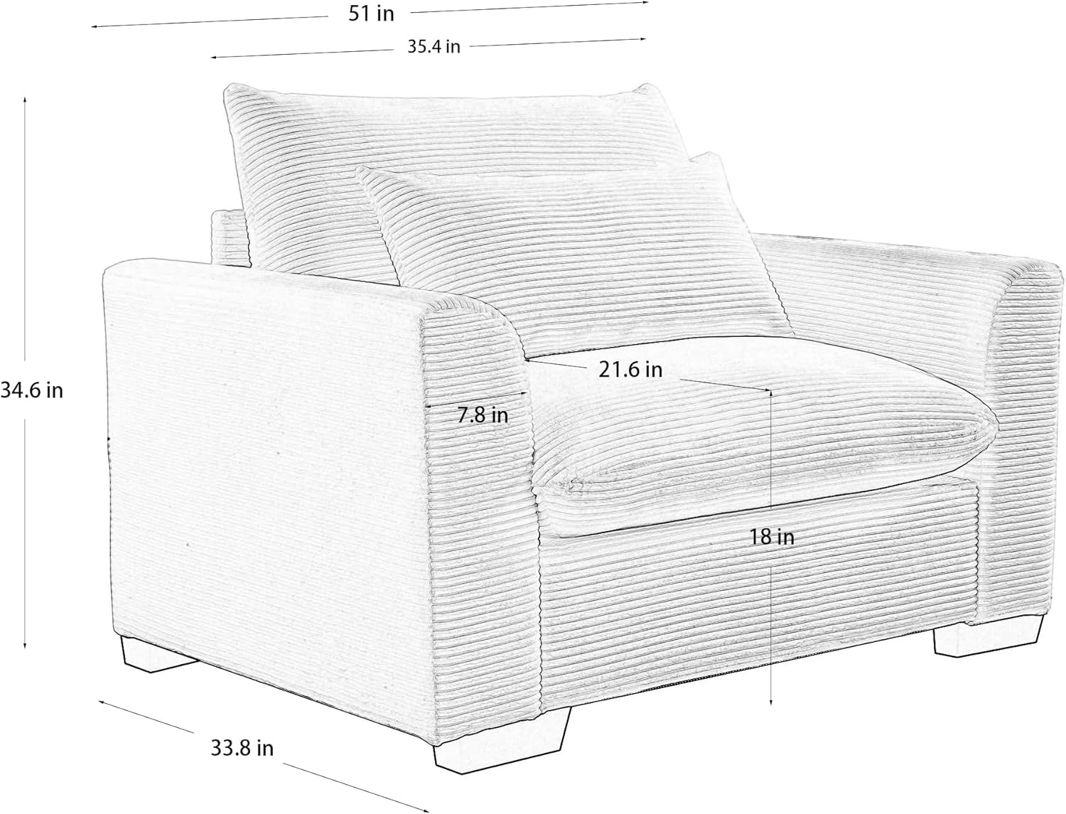 Brown Oversized Accent Chair, 51" W Corduroy Single Sofa Comfy Upholstered Armchair Extra Deep Seat,Lounge Chair for Living Room Bedroom Office Apartment