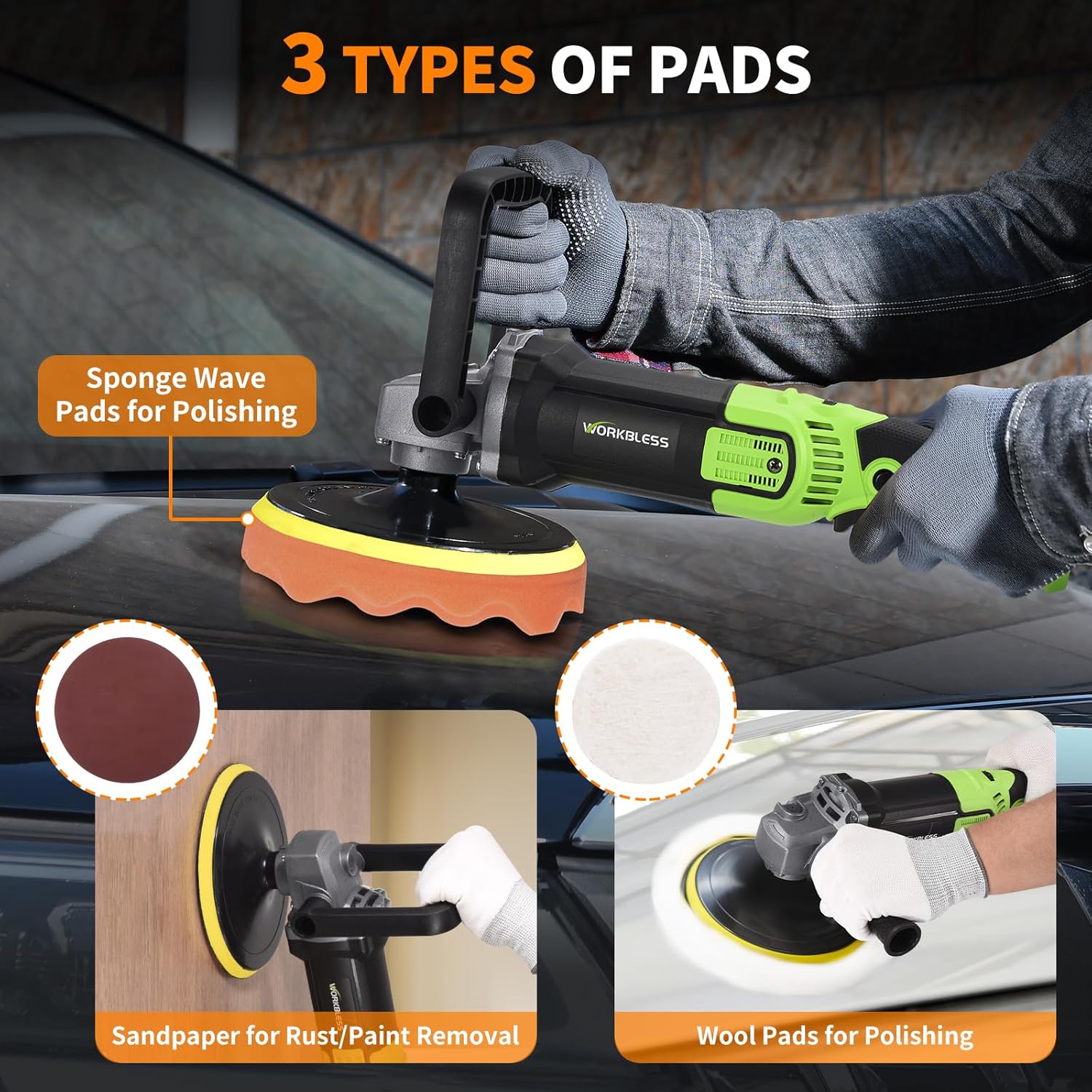 Buffer Polisher, 1600W 6"/7" Rotary Car Polisher with 7-Speed(1600-3500 RPM), Car Buffers and Polishers Kit for Cars, Boats, Floors, Furniture