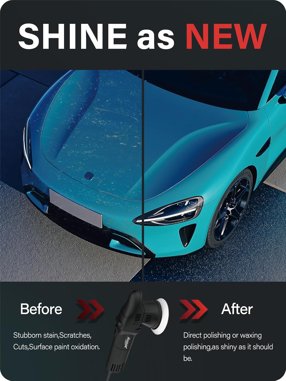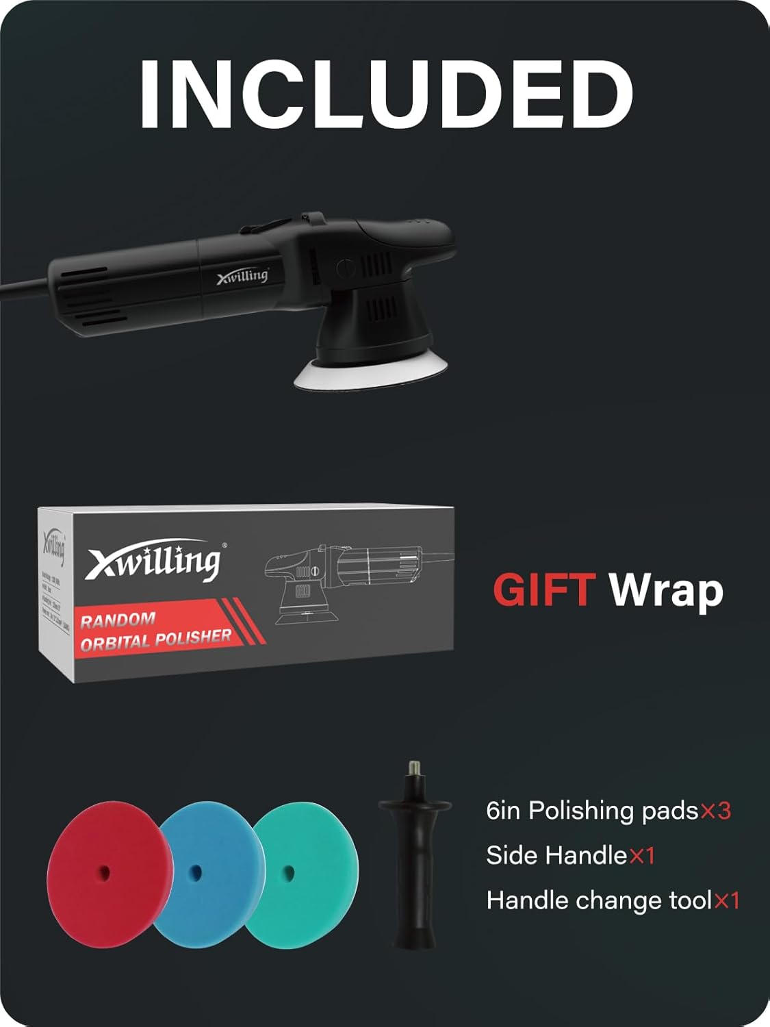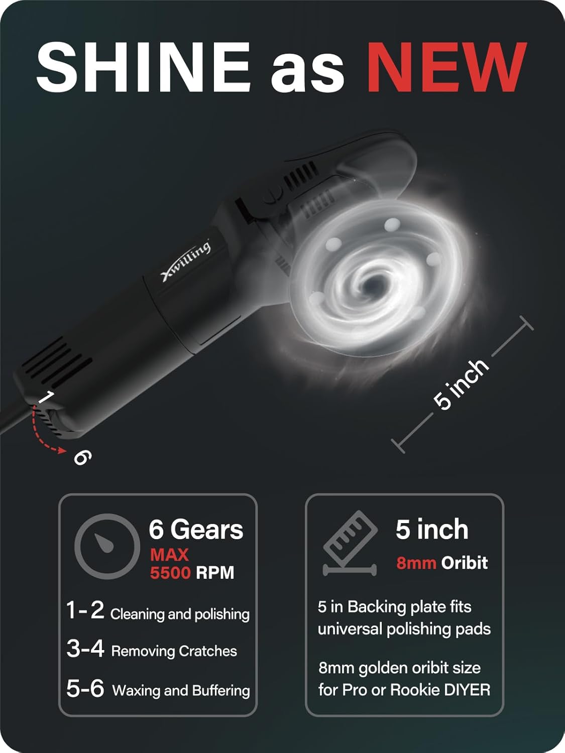 Buffer Polisher, 5-Inch 8MM Dual Action Random Orbital Car Polisher with 6 Variable Speed 1800-5500 RPM, Car Detailing Kit for Car Detailing Polishing and Waxing
