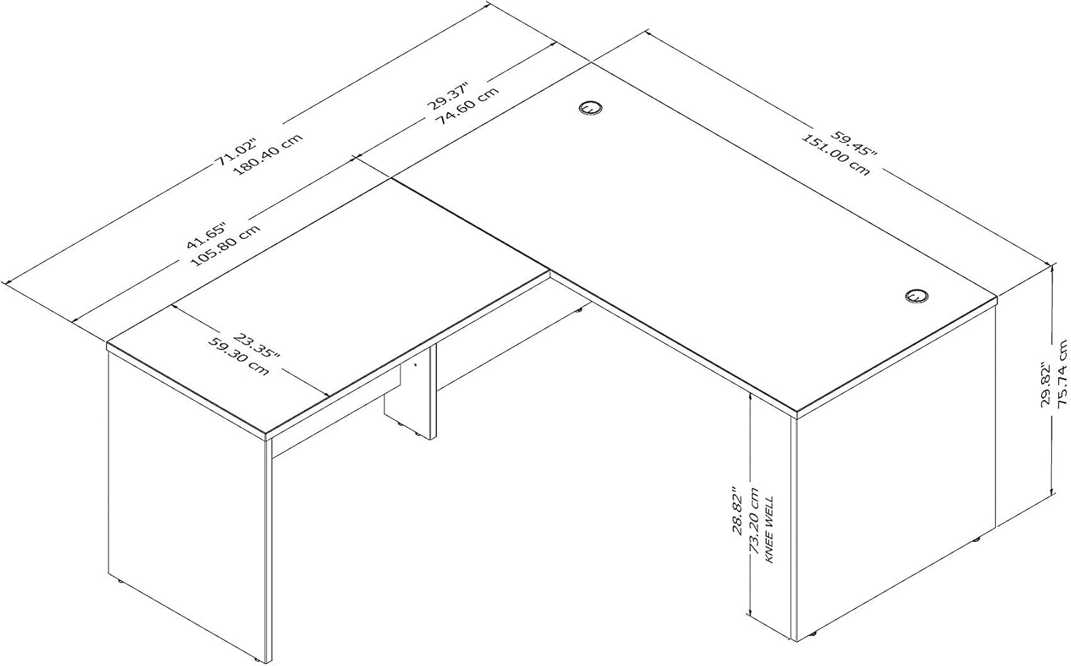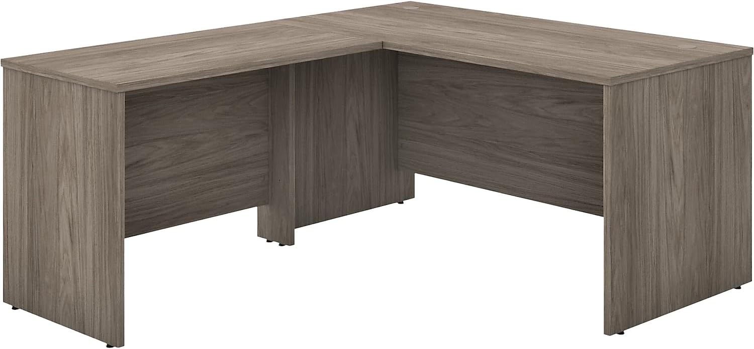 Highlighted by its contemporary style and commercial quality design, the Bush Business Furniture Studio C 60W L Shaped Desk with 42W Return presents an ideal workspace for the modern professional. Take advantage of the spacious corner desk surface to spread out with a computer, paperwork and more as you tackle your next big project. The L shaped desktop easily accommodates multiple monitors and other materials with a 200-pound weight capacity and built-in wire management grommets. Position the L Desk in a corner to save space in a small private office, or make use of the finished back to face outward in an open-plan environment. The Return can be installed on either side of the main work surface for a right or left-handed configuration, giving this L Shaped Computer Desk the ability to adapt to virtually any office layout. The Studio C Collection offers an array of coordinating storage products to complete your workspace, including convenient 2 and 3 Drawer Mobile File Cabinets (sold separately) that fit underneath the desktop for easy access to documents and supplies. Six attractive finish options give you plenty of freedom to choose the perfect look for your business or organization. This commercial office desk is tested to meet ANSI/BIFMA quality standards for safety and performance and is backed by the Bush Business Furniture 10 Year Manufacturer's Warranty. American made with U.S. and imported parts.