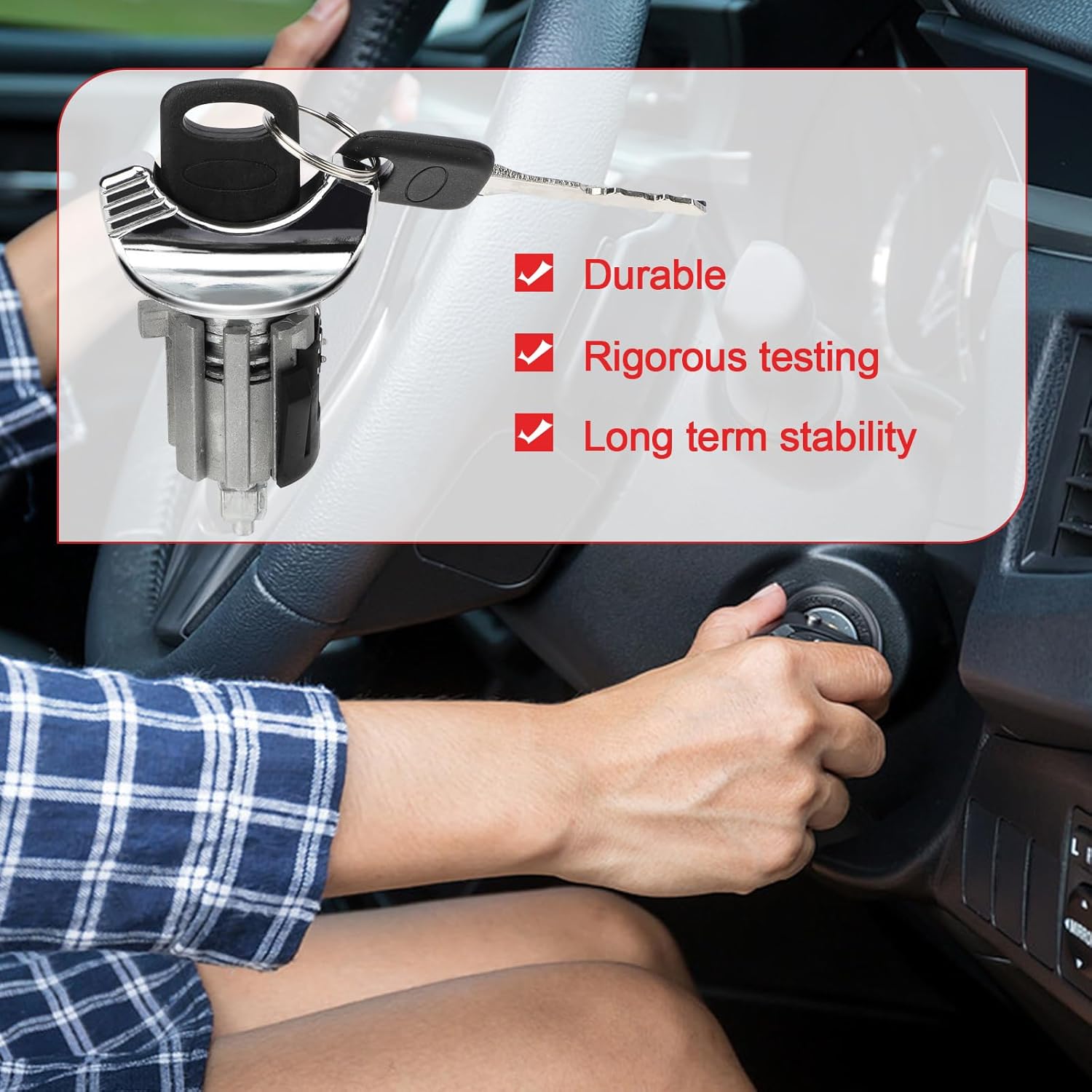 C42150 Ignition Switch Lock Cylinder & Front Door Lock Cylinder w/Key for 90-96 Ford E150 E250 E350 F150 F250 F350 Mustang Bronco Taurus/Mercury Sable Replaces# C-42-150 DP-42-122 F3UZ1522050D