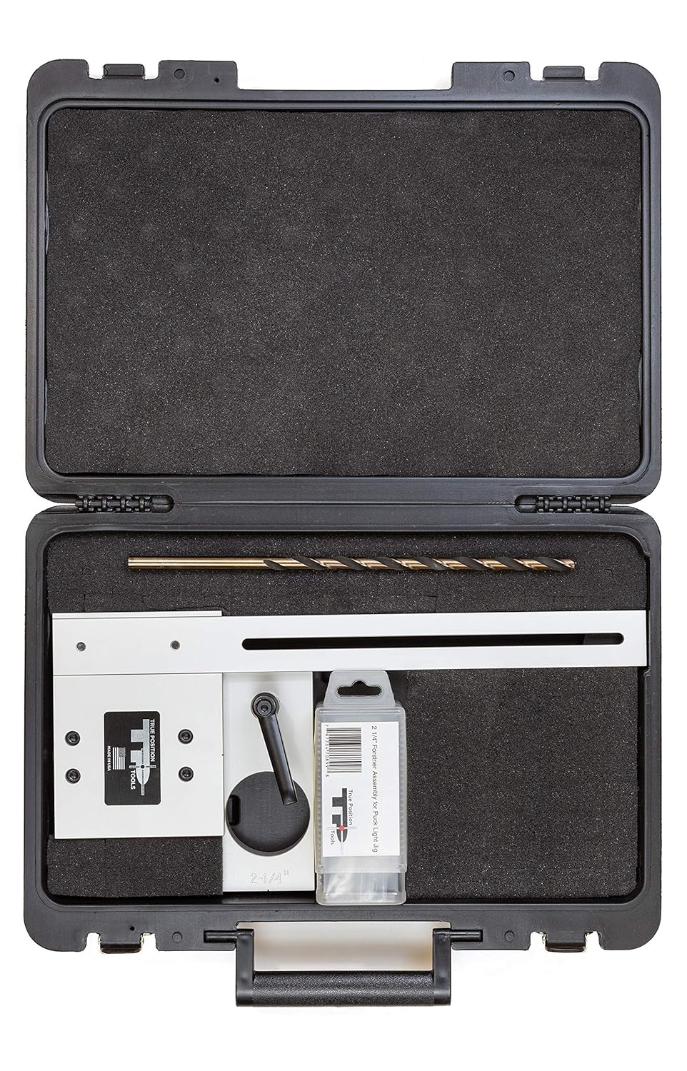 Cabinet Light Jig MAX, 2-1/8" and 2-1/4" Forstner Bits with Case - for LED Puck and Strips - Made in USA - True Position Tools