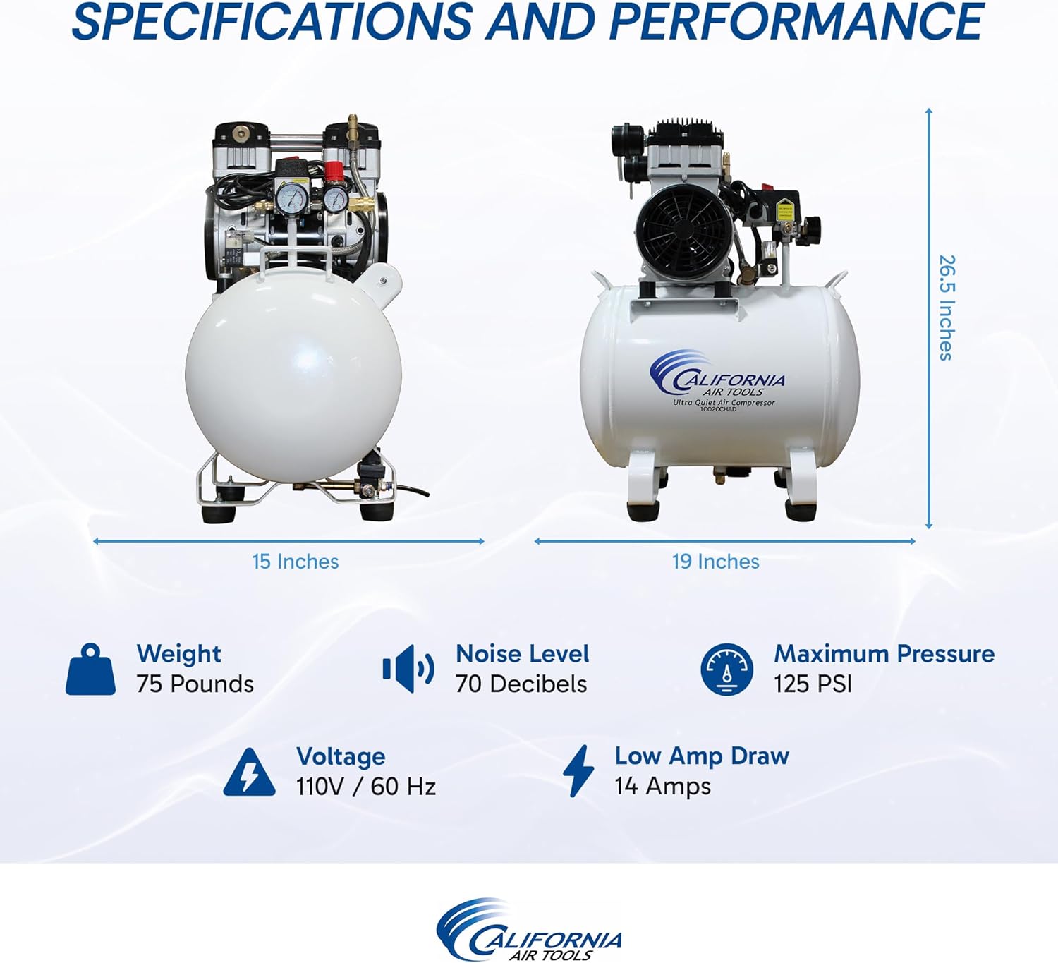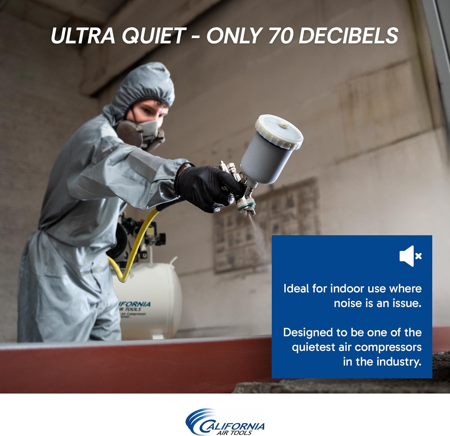 California Air Tools 10020CHAD 2.0 HP Ultra Quiet, Oil-Free Air Compressor, 10 Gallon Tank Capacity, 70 dB Noise Level, Electric, Portable, with Automatic Drain Valve