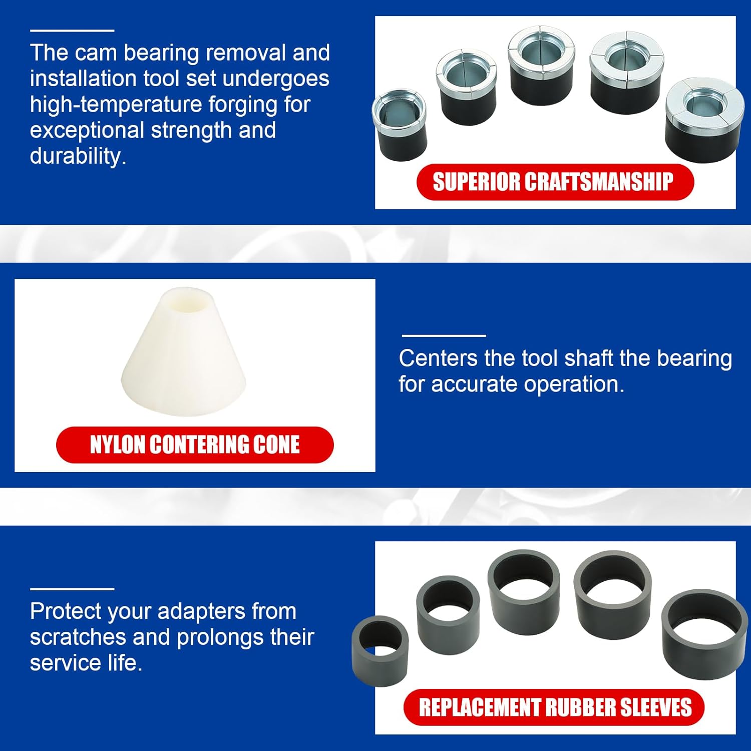 Cam Bearing Removal and Installation Tool Set, Camshaft Bearing Ranging from 1-1/8" to 2-2/3" for Most Domestic and Import Vehicle Trucks, Bearing Installation Tool