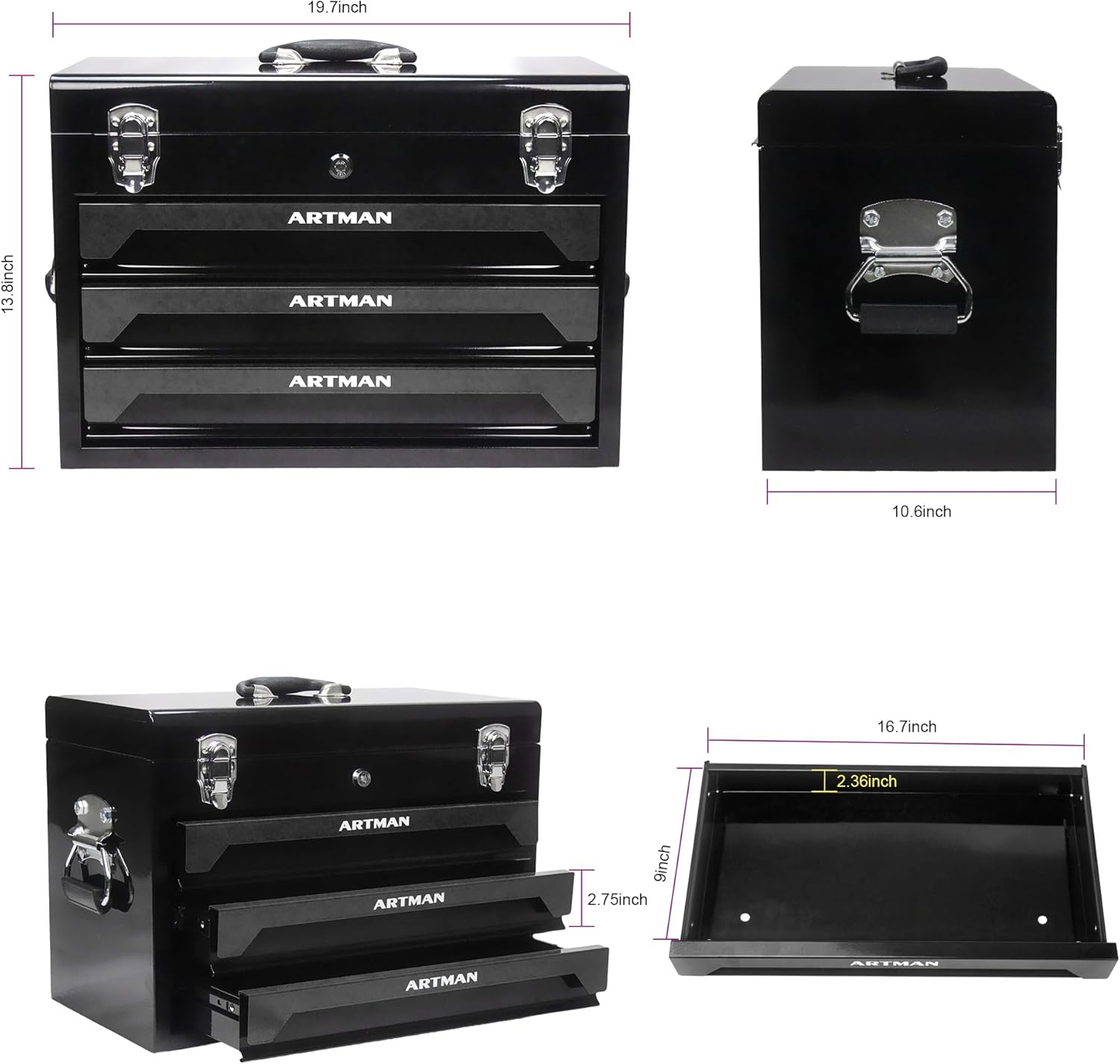 Campfun 439PCS Tool Set, Mechanic Tool Set for Home, Tool Box Set 4-Tier Socket Wrench Ratchet Plier Nails, Home Tool Set Mechanics Kit with 3 Drawers for Adults Man Handyman, Black