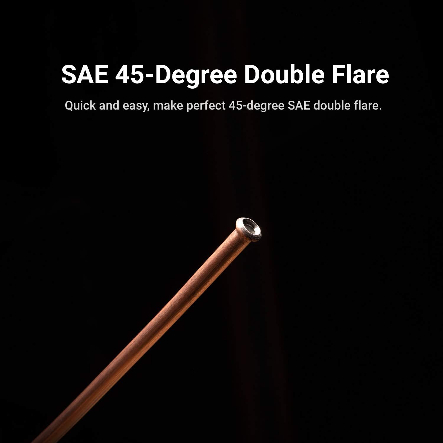 The Capri Tools Double Flaring Tool lets you create perfect 45-degree SAE double flares in half the time compared to old generation flaring tools. Its compact and portable design lets you work both off vehicle and on vehicle, even in tight spots. The die can be detached so you can also work with a bench vise for more grip. The tool works flawlessly with 1/4 in. non-stainless steel, nickel, and copper tubing. This is an all-in-one tool. A 10 mm and a 17 mm wrenches are the only other tools you need to start making perfect double flares.