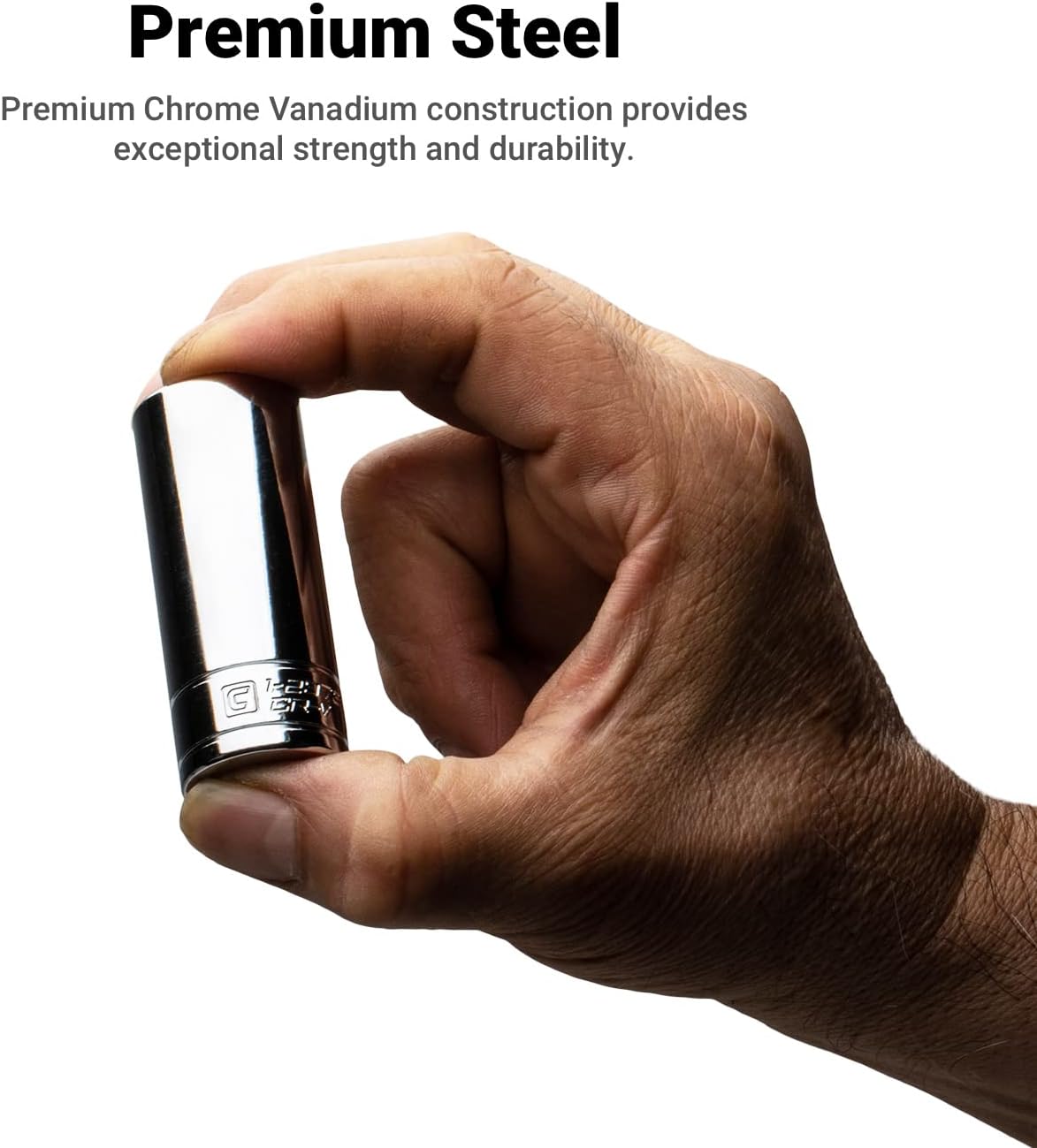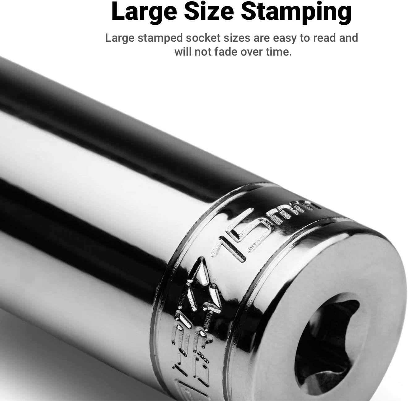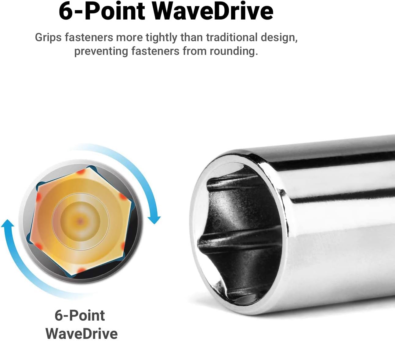 The Capri Tools 3/8 in. Drive Shallow and Deep Chrome Socket Set is a collection of most frequently used 3/8 in. drive shallow and deep chrome sockets in metric sizes. We use premium Chrome Vanadium steel tempered with our proprietary heat treatment process to make these sockets. They are durable and withstand more torque. Each socket underwent careful polishing and protective plating process to achieve our own MaxChrome finish. The 6-point WaveDrive design grips fasteners more tightly than traditional design, preventing fastener rounding and giving you more leverage. Meets and exceeds ASME B107.110 standards.