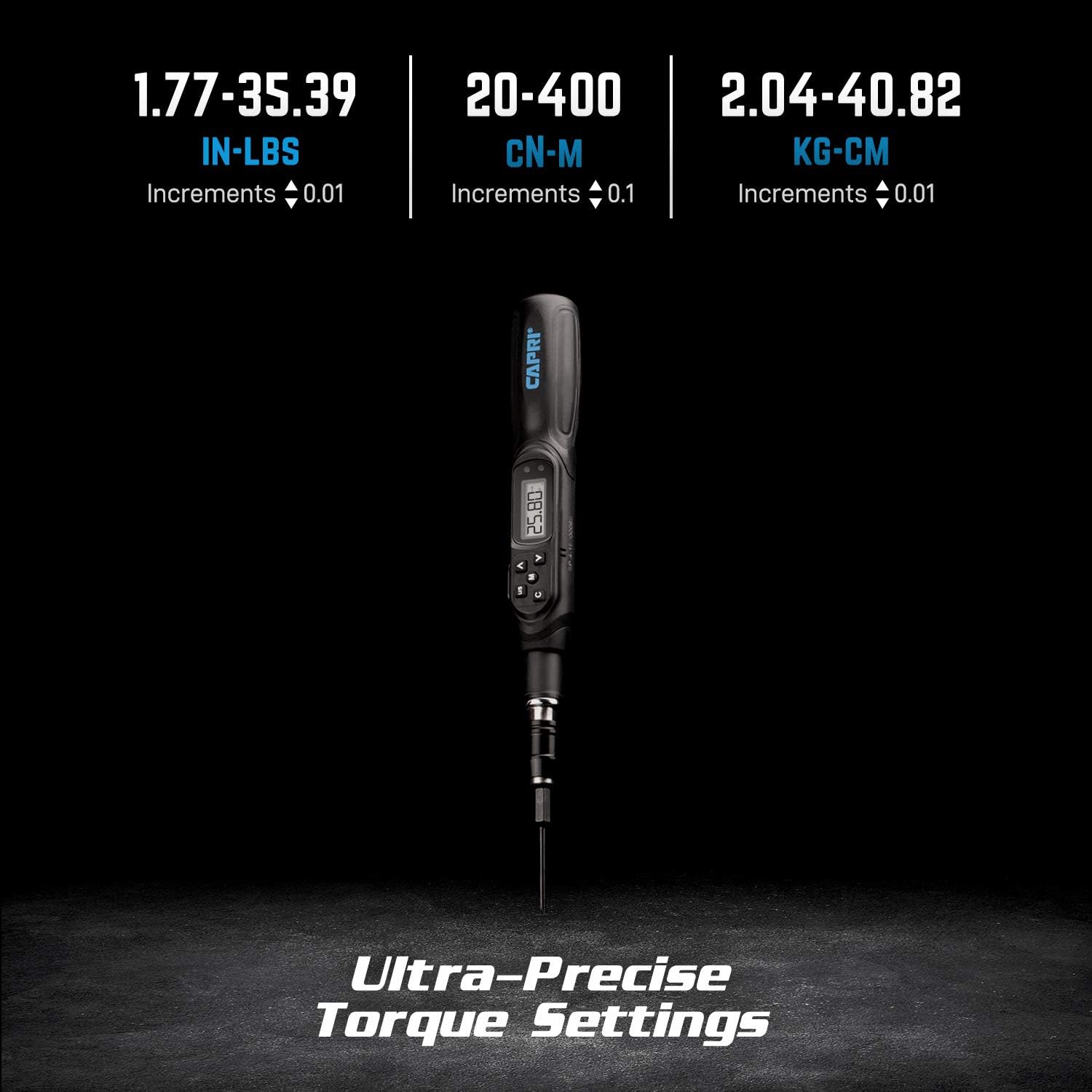 Capri Tools Digital Torque Screwdriver, Dual Direction, 1.77-35.39 in. lbs./20-400 cNm/2.04-40.82 kg-cm, 26000