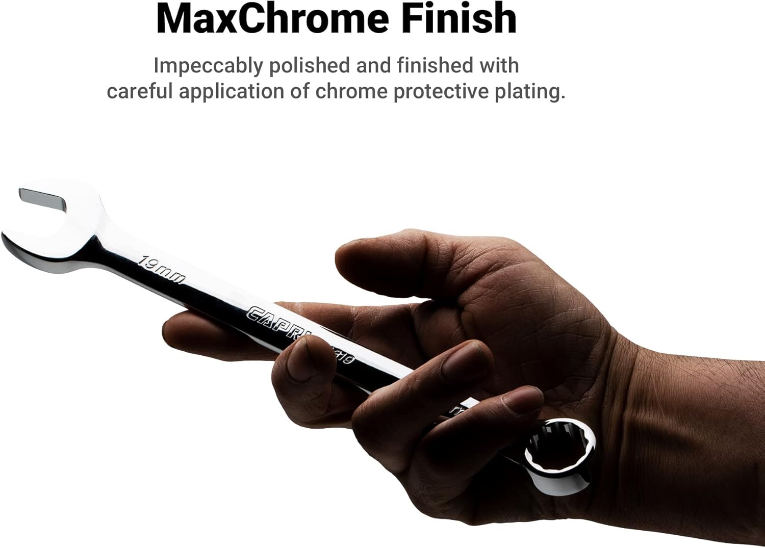 Capri Tools MaxChrome Combination Wrench Set, 6 to 24 mm, 19-Piece with Heavy-Duty Canvas Pouch