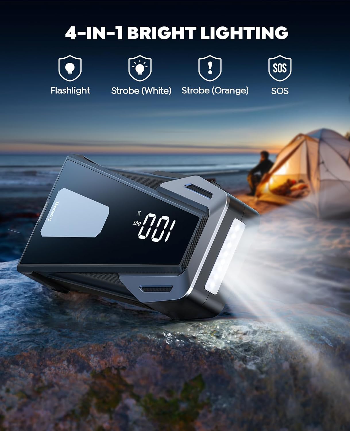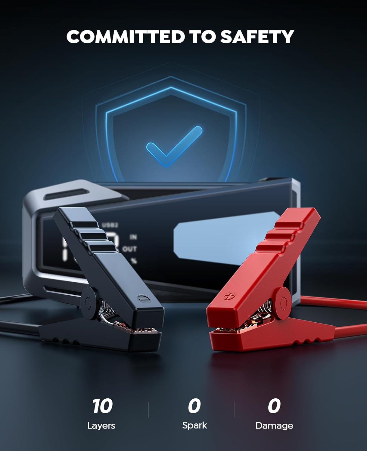 Car Battery Jump Starter 5000A 12V Safe Jump Box, Battery Jumper Starter Portable (All Gas/10.0L Diesel), Car Jump Starter Battery Pack with Extended Jumper Cables, Fast Charge, Lights