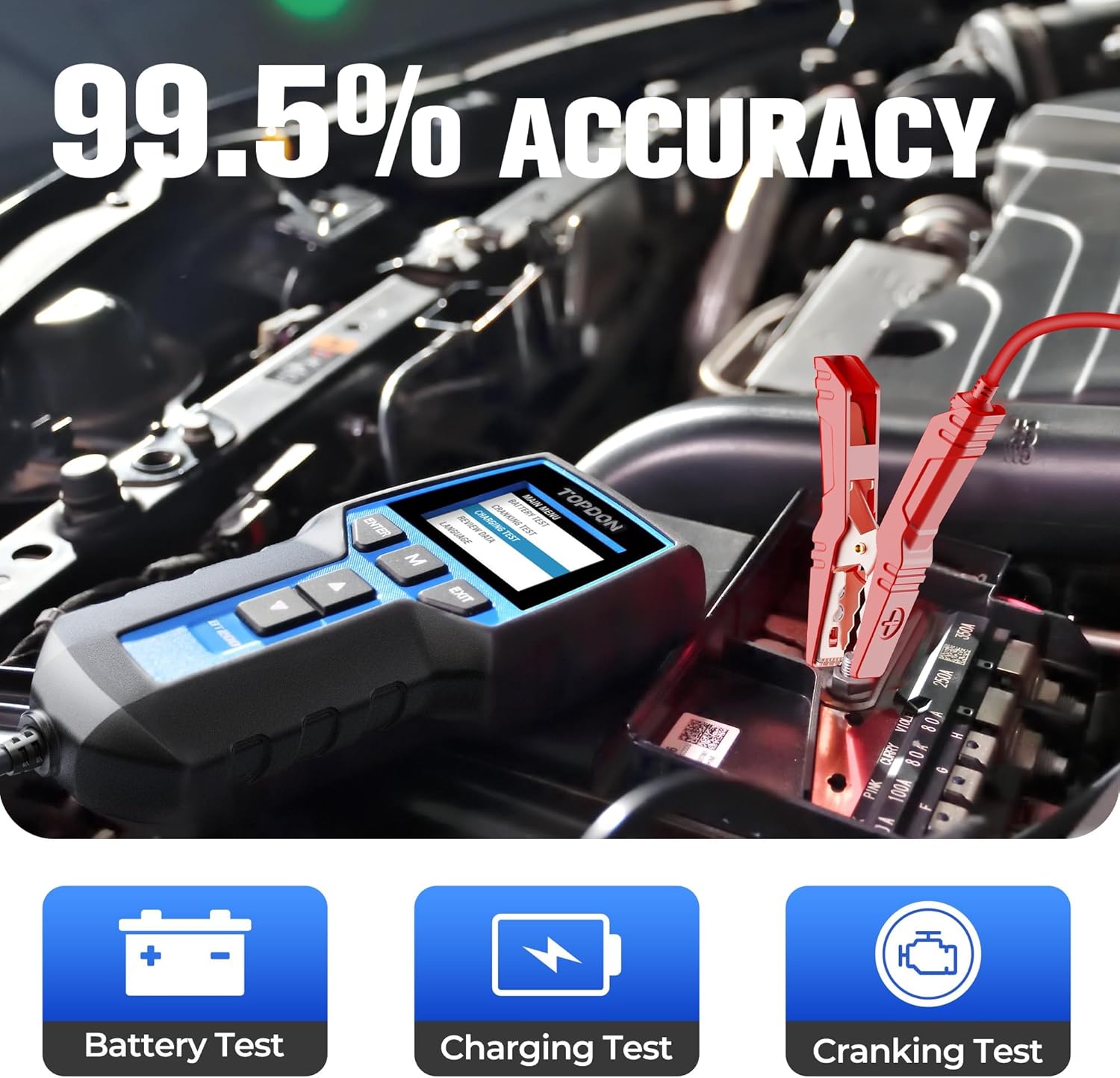 Car Battery Tester 24V 12V Load Tester, TOPDON BT200 100-2000CCA Automotive Alternator Tester Digital Auto Battery Analyzer Charging Cranking System Tester for Car Truck Motorcycle ATV SUV Boat Yacht