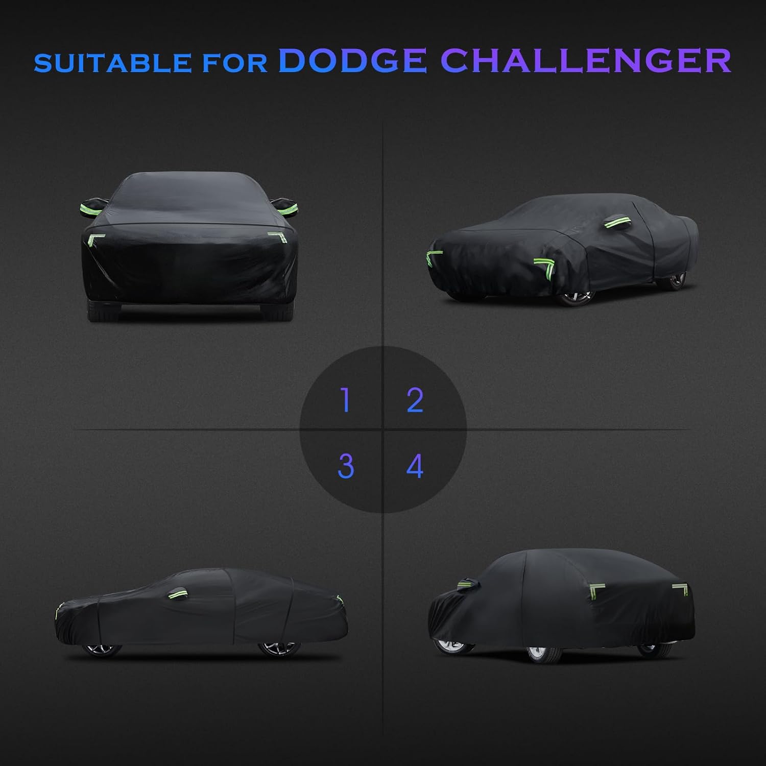 Car Cover Custom Fit for Dodge Challenger 2008-2023,6 Layers Truck Cover Waterproof All Weather for Automobiles,Outdoor Full Exterior Cover,Rain, Sun, Wind Protection,Black