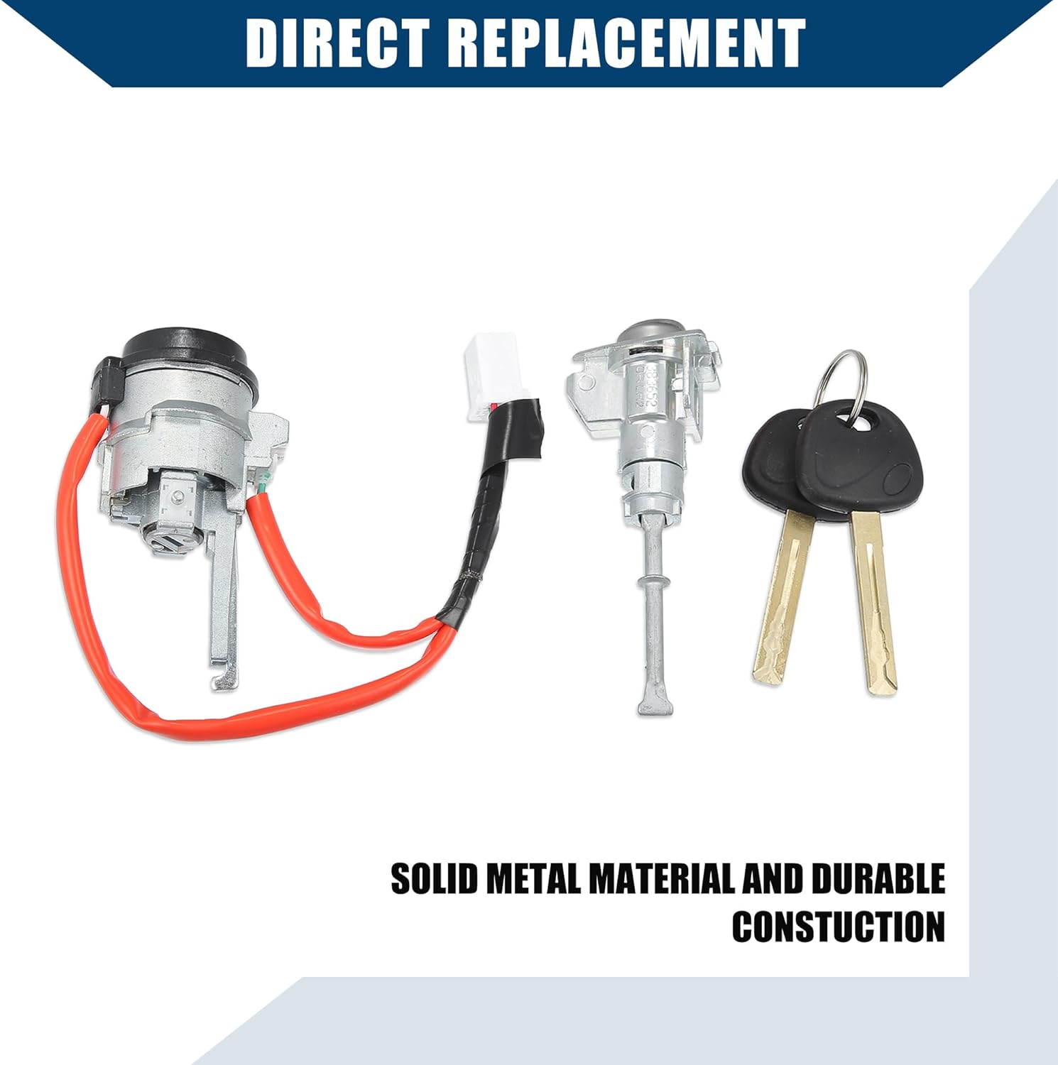 Car Ignition Switch Cylinder Front Door Lock Cylinder with 2 Keys for Hyundai IX35 2015 / Steering Lock Cylinder Set/Metal / 1 Set/Black