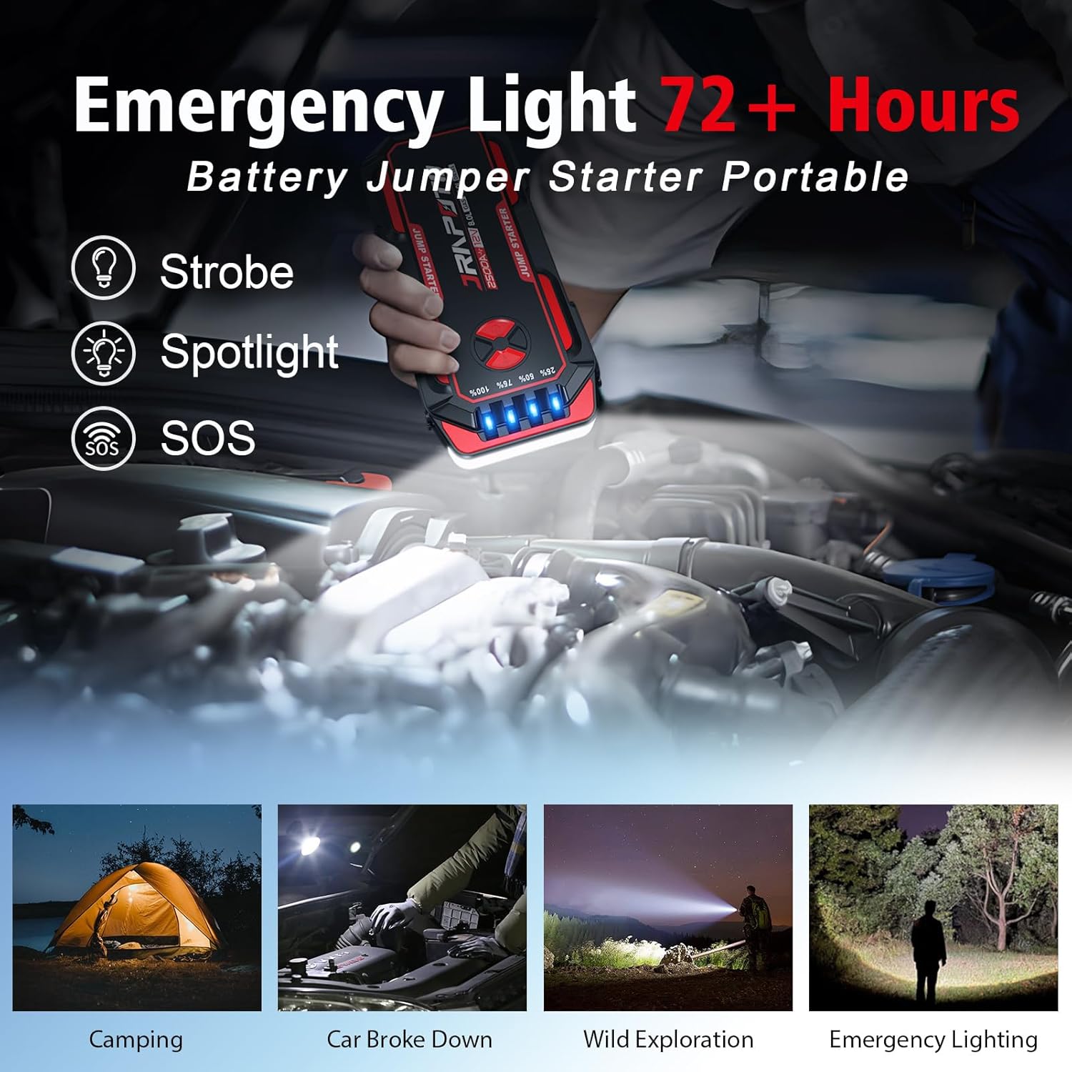 Car Jump Starter, 2500A Peak Jump Box,Battery Jumper Starter Portable,12V Car Starter Jump Box for 8.0L Gas and 7.0L Diesel Cars with USB Ports,LED Flashlight