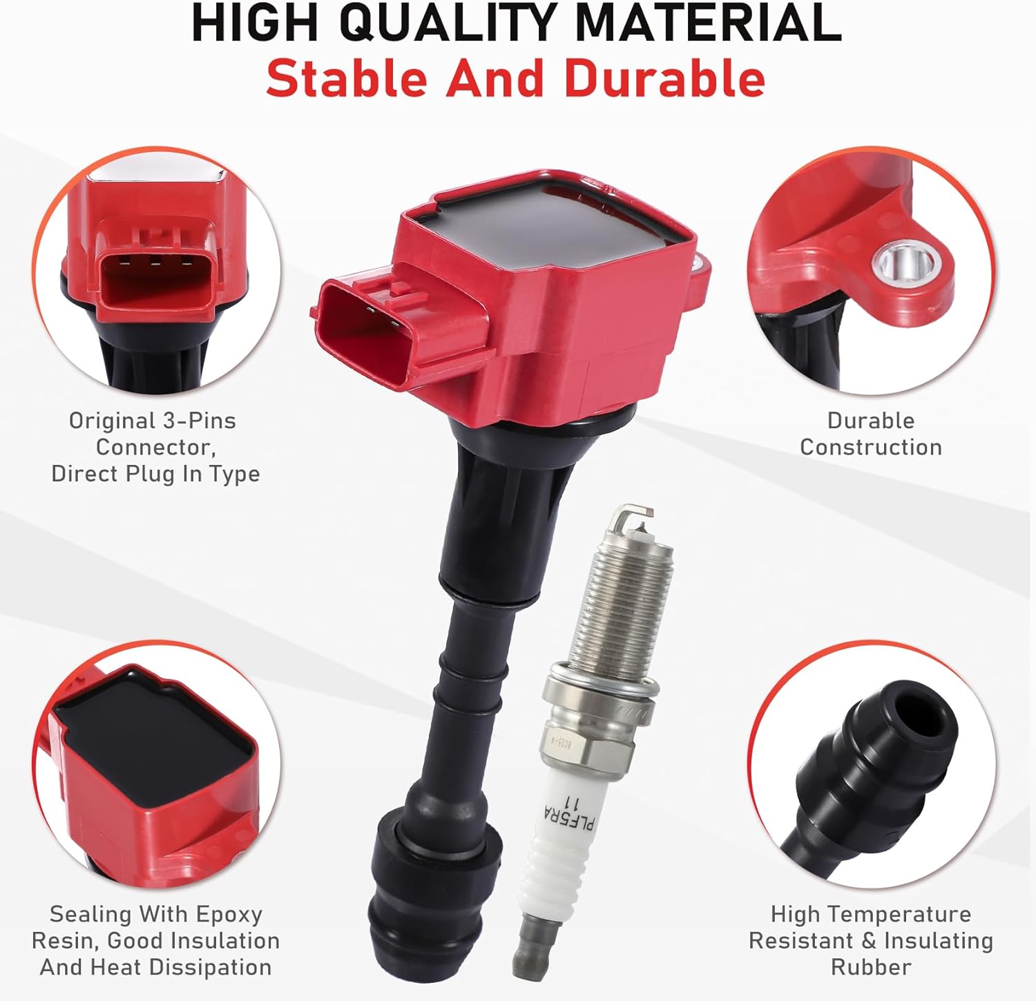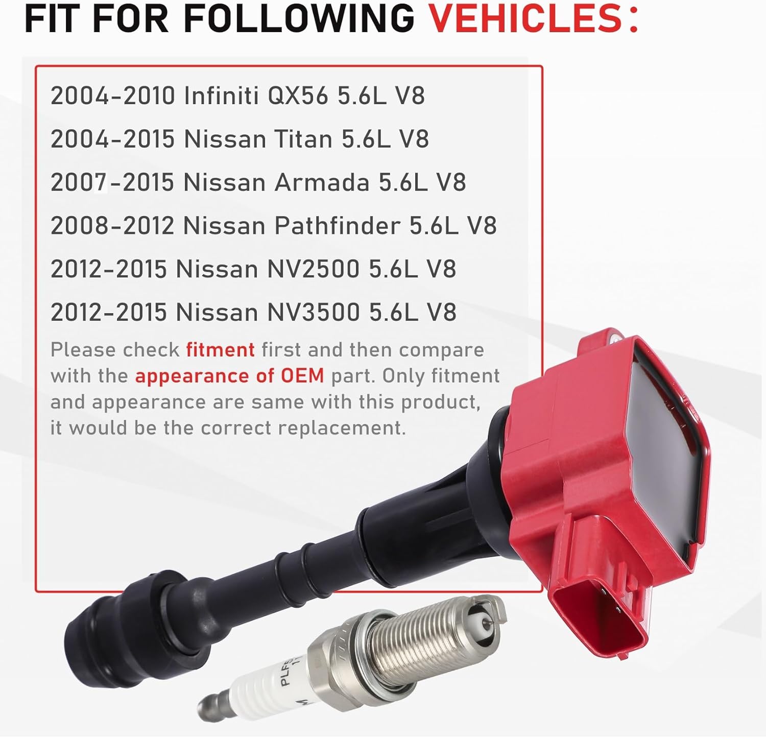 CarBole UF510 E1010 Ignition Coils Spark Plugs Set Replacement for Nissan QX56, Infiniti Titan Armada Pathfinder NV2500 NV3500