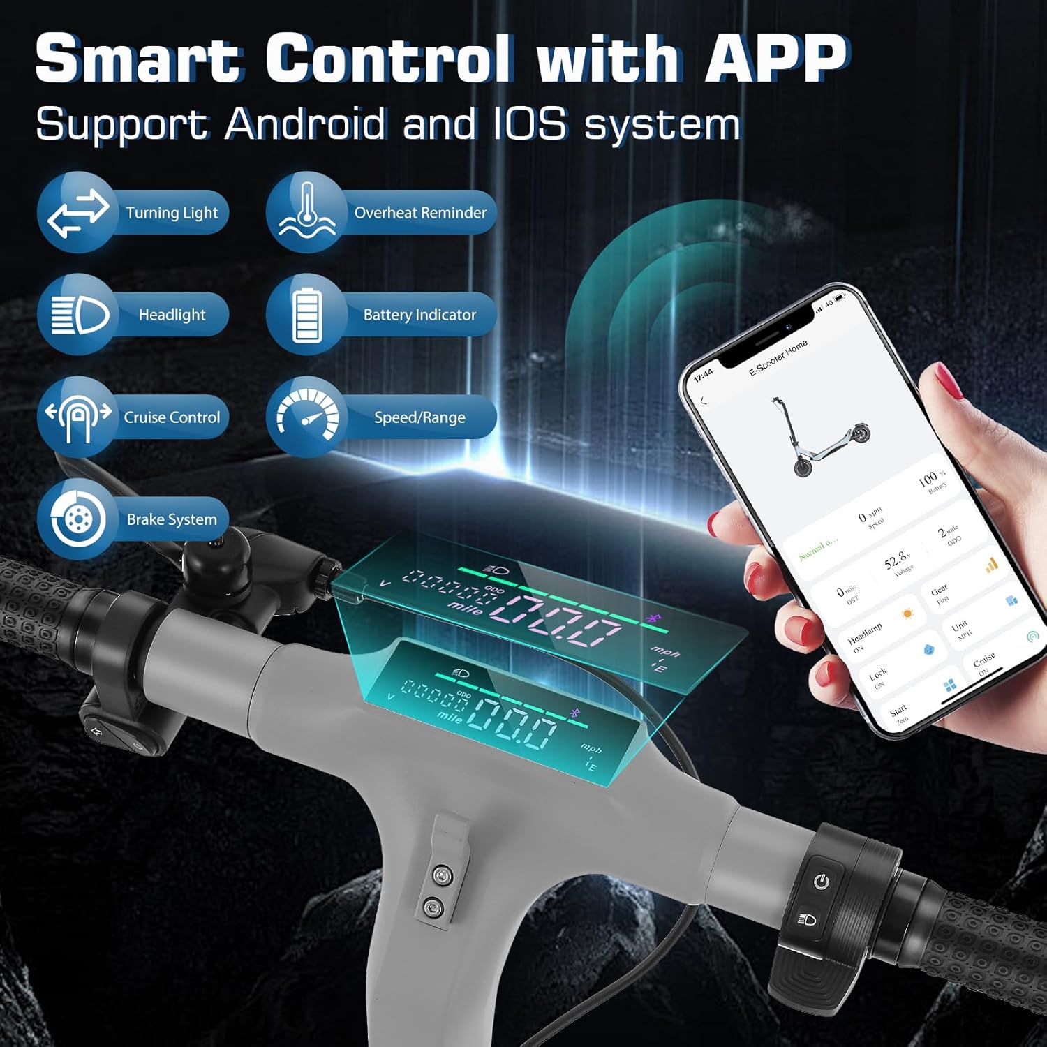 Caroma Electric Scooter, Peak 850W Powerful Motor, 30 Miles Long Range and 36 MPH Top Speed, Turn Signal & Cruise Control, Folding Electric Scooter Adults with Wide Pneumatic Wheel