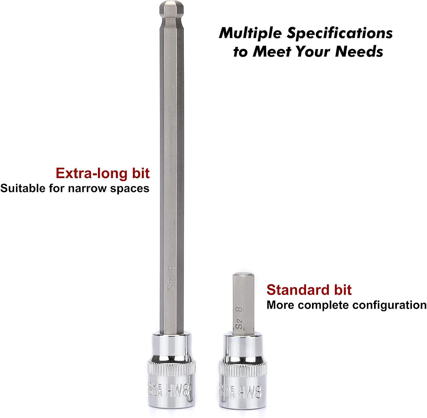 - 1/4", 3/8" and 1/2"drive tamper proof Torx/hex / ball end hex SAE & metric bit set