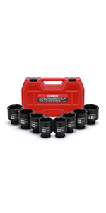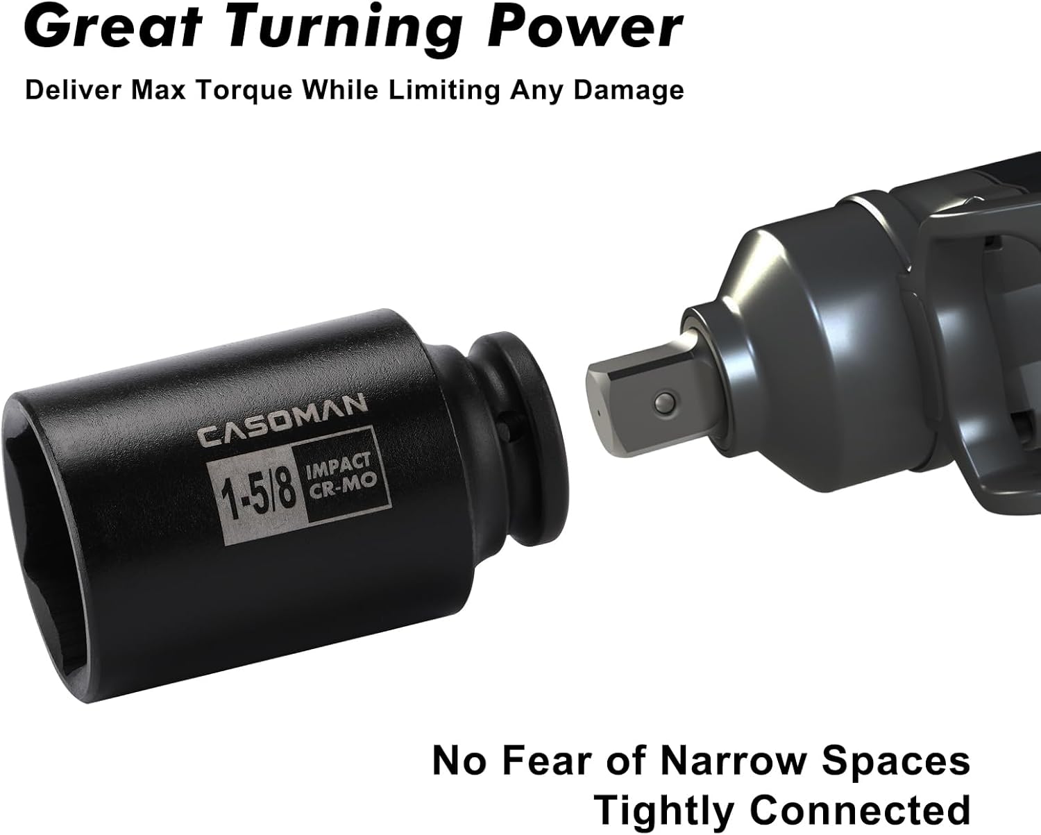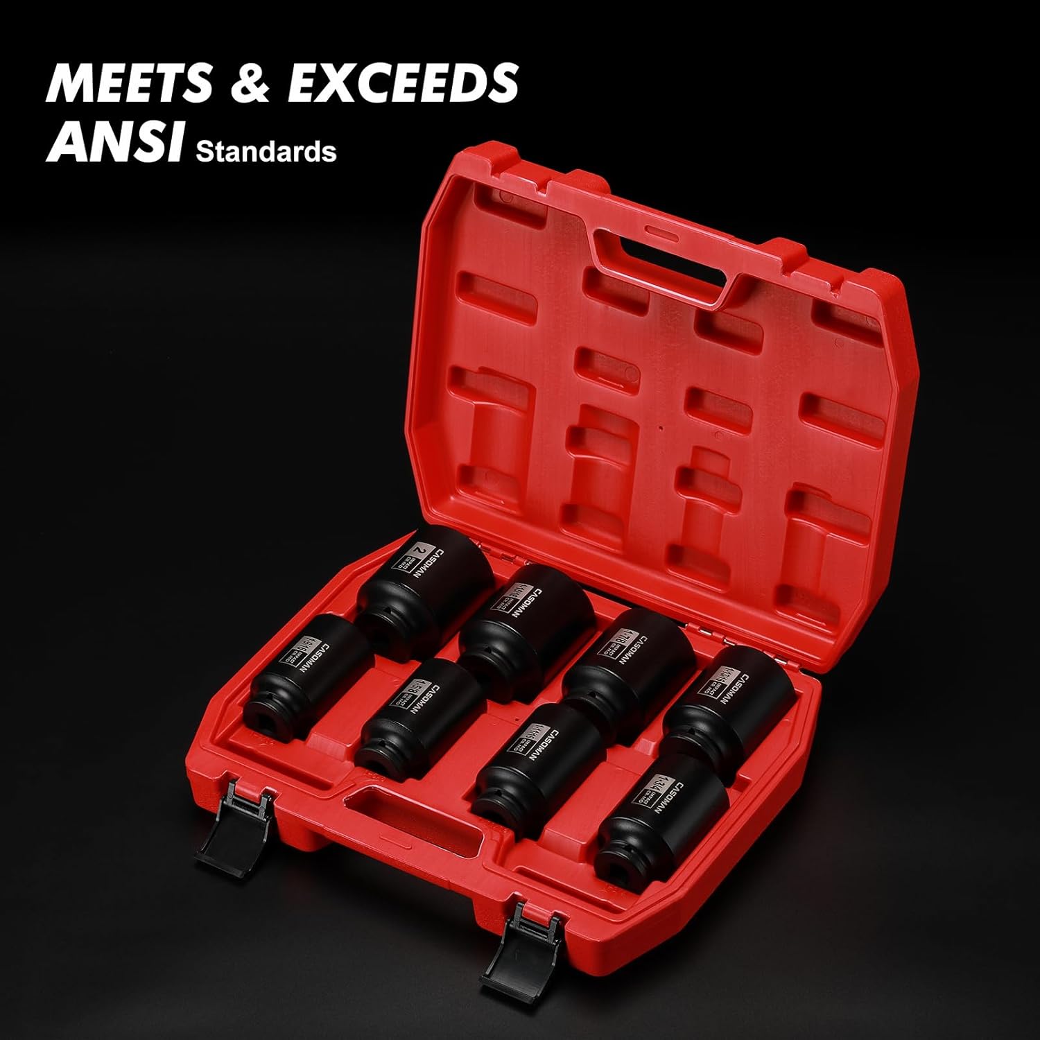 CASOMAN 8PCS 1/2"Dr. Deep Impact Socket Set-SAE, 1-9/16" to 2", 6-Point, Spindle Axle Nut Impact Socket Set, CR-MO, Impact Grade