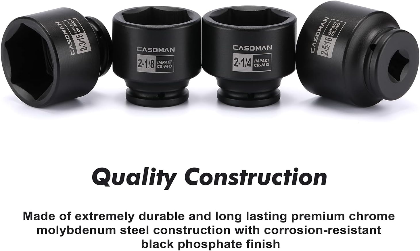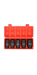 CASOMAN 9PCS 3/4" Drive Spindle Axle Nut Impact Socket Set, Include 1/2" to 3/4" Adapter, 6 Point, CR-MO, 2-1/16" to 2-1/2", Large Socket Set, Heavy Duty Use In Removing And Installing Axle Nuts