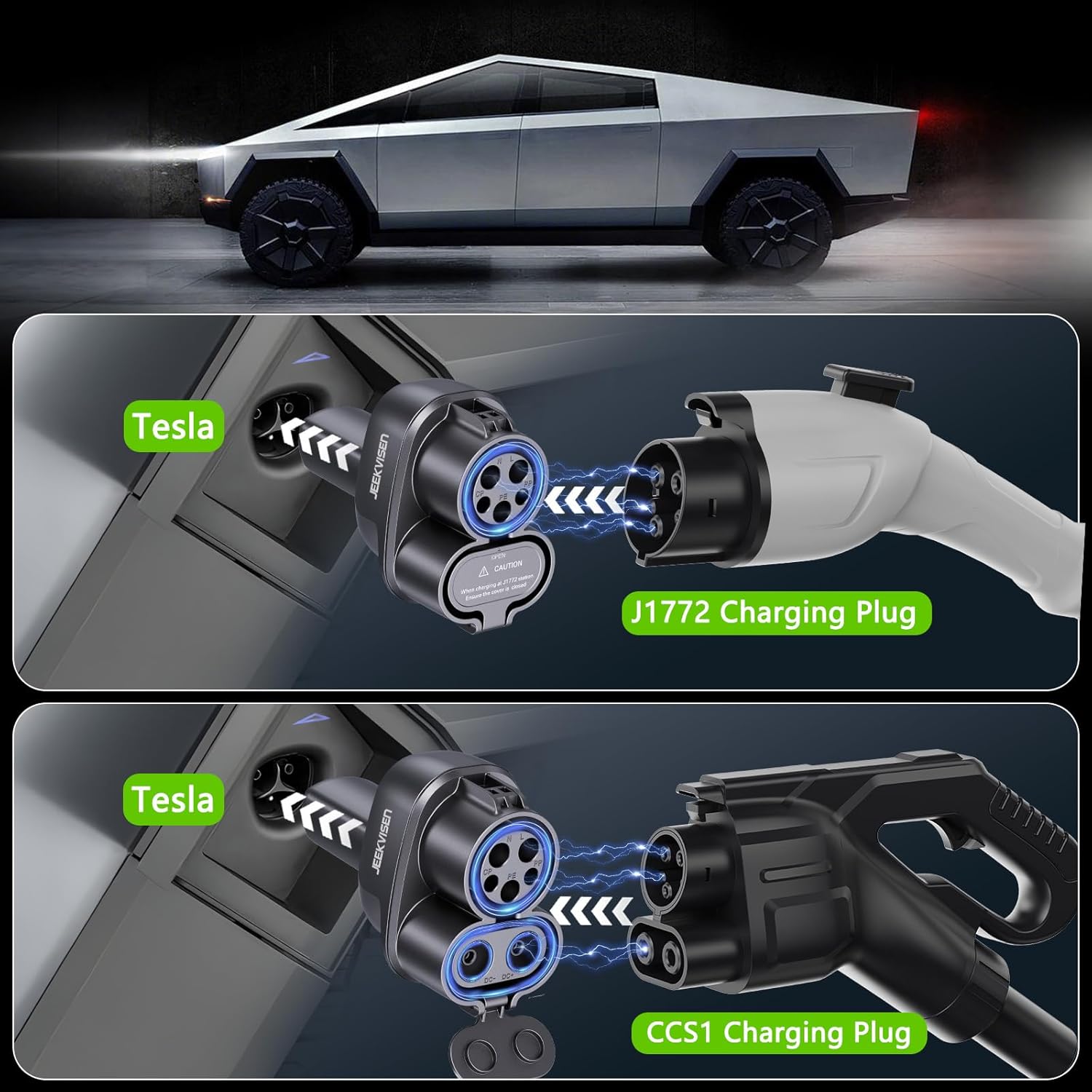 CCS & J1772 to Tesla (NACS) Adapter,250KW Fast Charging for Tesla Model 3/Y/S/X/Cybertruck, Compatible with CCS1 DC & J1772 AC Stations, Supports Level 1/2/3 Chargers